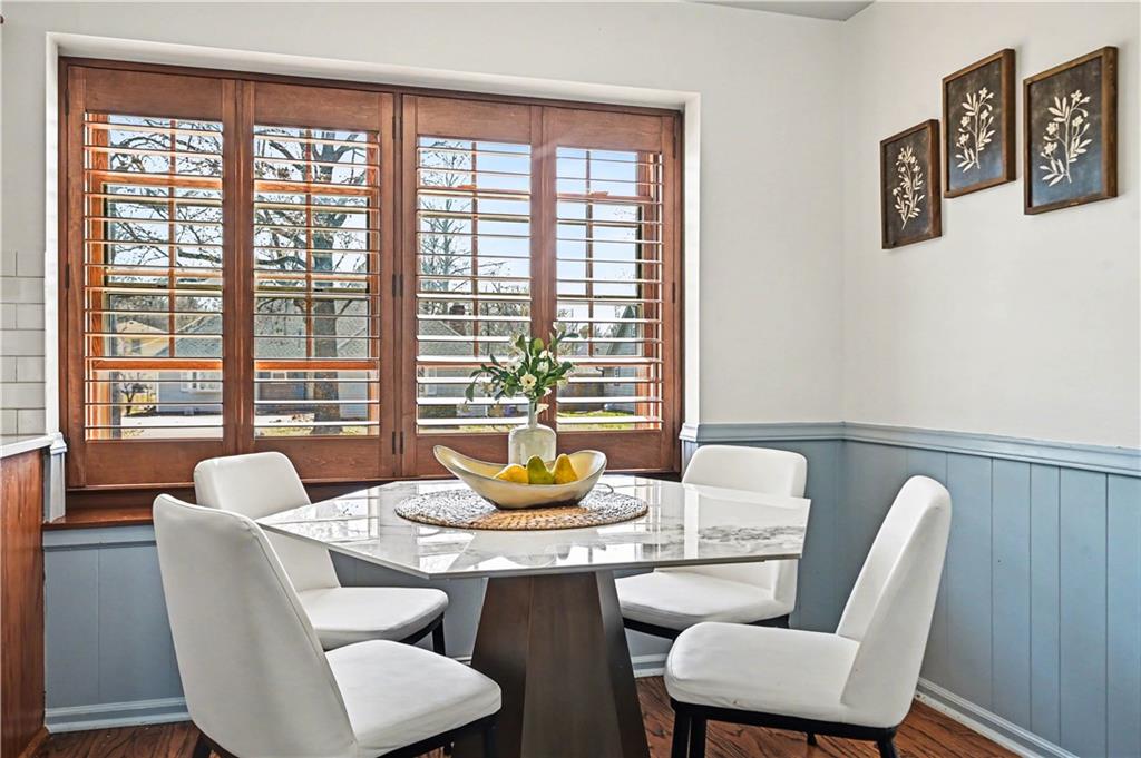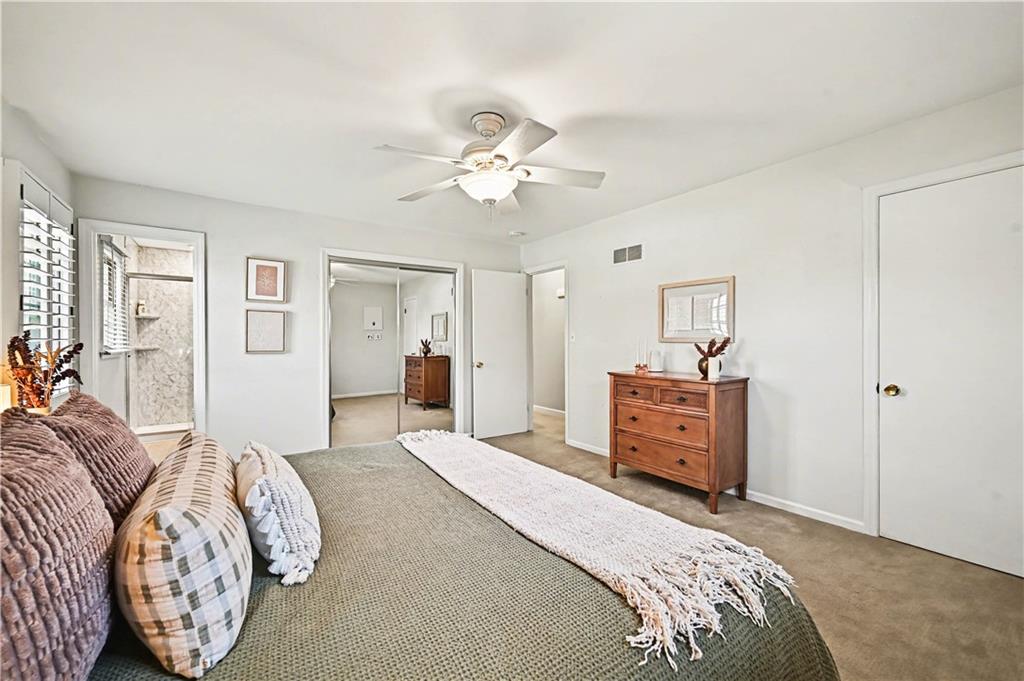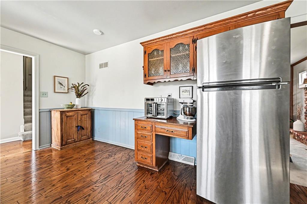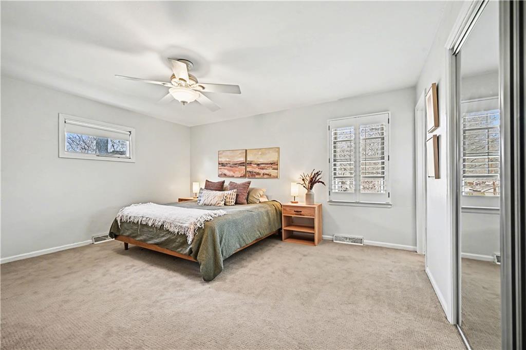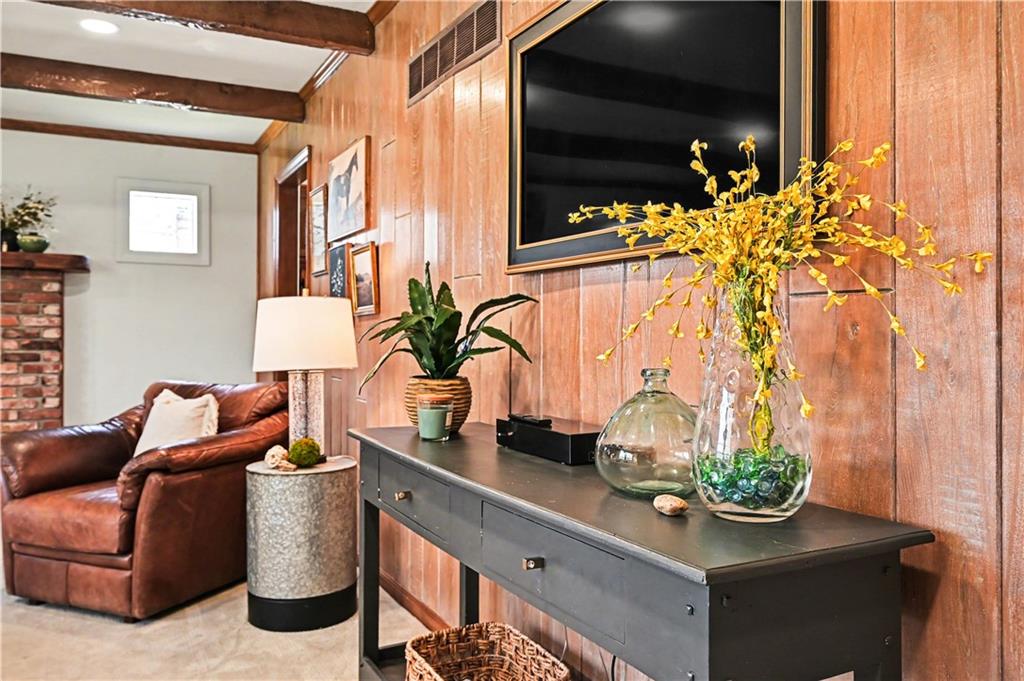 Lush Lot. Exceptionally Maintained. Welcome to this lovingly maintained home in the heart of Sylvan Grove—where vintage character and thoughtful updates come together to create a space that feels timeless. From the moment you arrive, the home’s manicured lawn, mature landscaping, and inviting curb appeal set the tone for what’s inside. Sunlight pours through the windows, highlighting a cozy interior that blends nostalgic design details with modern comfort. The main level offers a beautifully functional kitchen with stainless steel appliances, classic wood cabinetry, sleek countertops, and hardwood floors. The adjacent dining area features plantation shutters and a built-in desk nook. The living room is warm and inviting, featuring exposed wood beams, rich paneling, and a classic brick fireplace. A charming Dutch door off the living room opens to the backyard—allowing fresh air and sunshine. Decorative mirrors, vintage cabinetry details, and distinctive hardware throughout the home add layers of personality and history. One of the home’s most delightful surprises is the preserved vintage character found in the bathrooms, including original tilework with a beautiful fleur-de-lis motif. Upstairs, the spacious primary suite offers a remodeled private bath featuring a marble-inspired shower and updated vanity. Two additional bedrooms share hall bath.The finished lower level adds valuable flexibility with a generous rec room that can easily serve as a home office, media space, or potential fourth bedroom. A third full bath along with laundry and storage space makes this level ideal for guests, hobbies, or working from home. Step outside to an expansive deck overlooking the fully fenced backyard. With its preserved vintage details, tasteful updates, walkable location, and warm, light-filled interiors, this gem offers the best of both worlds—character you can’t replicate and the functionality today’s buyers are looking for.