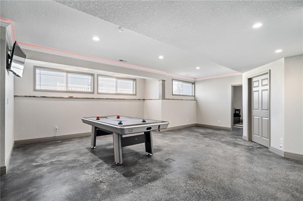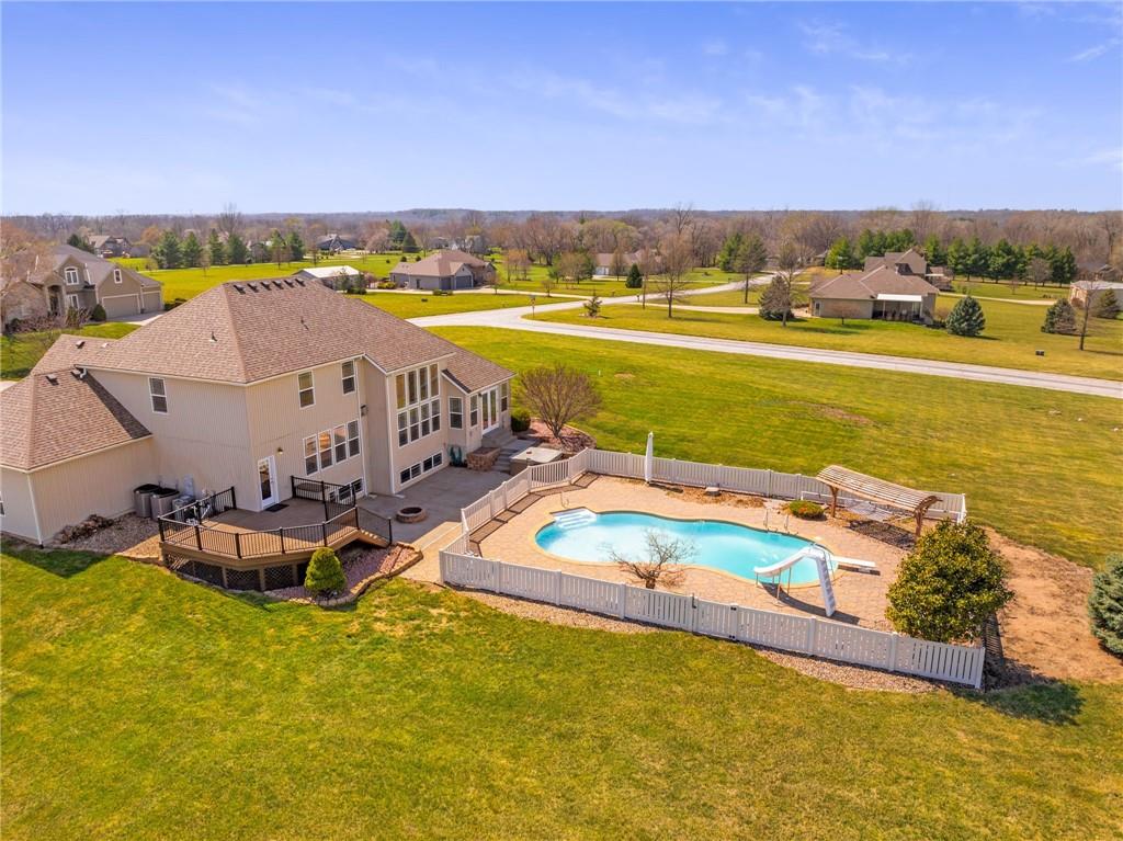 Welcome to your private retreat on 3 acres! This beautiful 1.5-story home features vaulted ceilings, 5 bedrooms, 4.5 bathrooms. The kitchen has been updated with fresh quartz countertops, and the primary suite opens to the four seasons room, perfect for relaxing year-round. The finished basement is set up for entertaining with a theater room and a bar, making it a great space for gatherings, or movie nights. Step outside to enjoy your own backyard oasis featuring a large heated swimming pool and hot tub, all surrounded by the privacy of your 3-acre lot. A 3-car garage completes the home with plenty of space for vehicles and storage. Space, privacy, and great entertaining areas. This one is a must see! The theater seating, basement TV, and downstairs barstools are negotiable and available for purchase.