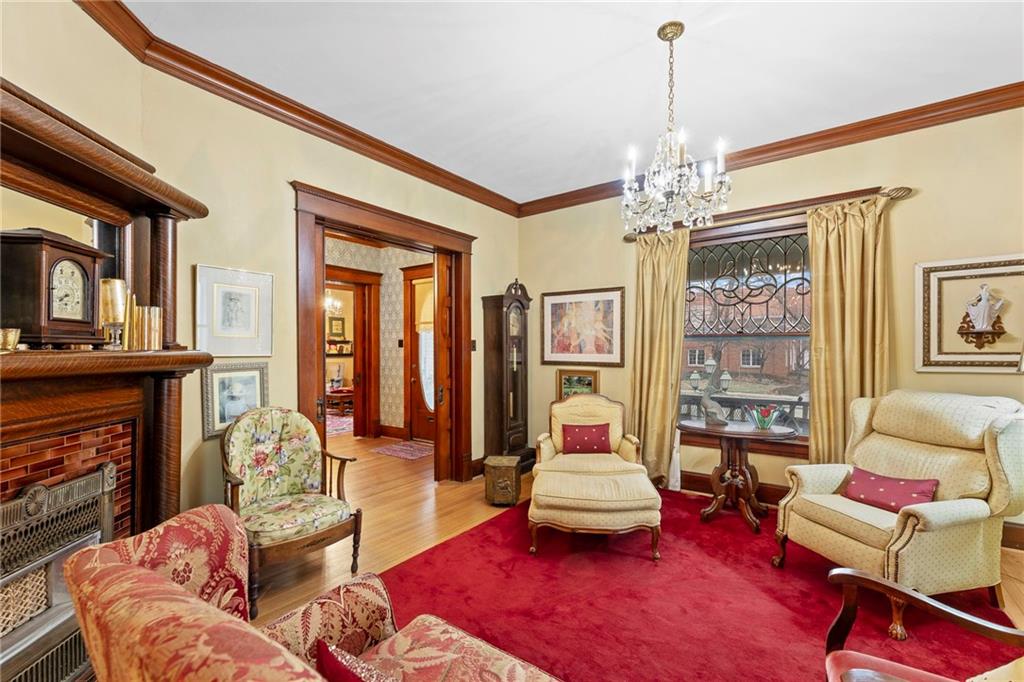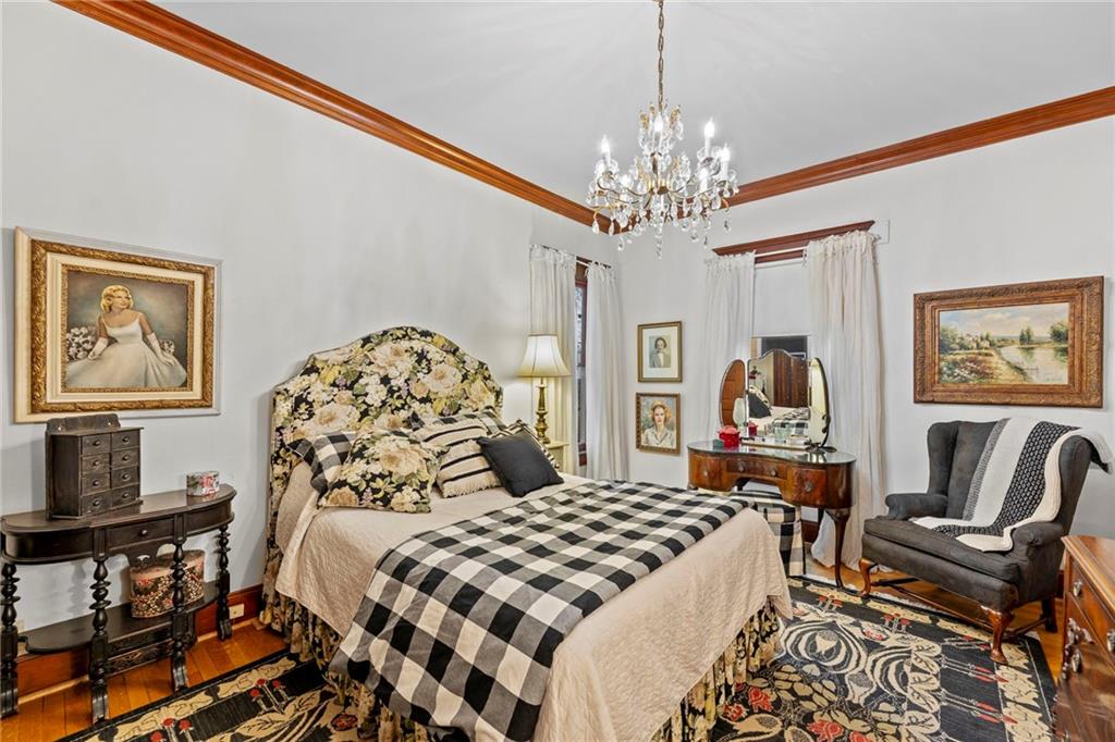 Expect to be impressed as you step into the timeless elegance of the "Washburn" house, a rare residence that masterfully blends old-world charm with sophisticated modern comfort. Meticulously updated while preserving its historic integrity, this home showcases authentic craftsmanship through unique chandeliers, ornate trim, wide crown and baseboard moldings, and original solid wood interior doors. The architectural character shines in the 3 sets of beautiful pocket doors and the lead glass windows that grace the front of the home, while modern peace of mind is provided by newer windows throughout the rest of the house and a central heat and air system installed within the last 5 years. A large, covered front porch invites you into a grand entry room, flanked by an elegant living room featuring an original fireplace and a lovely, sunlit parlor. The gourmet kitchen is a chef's dream, boasting cherry cabinetry, a quartz island, and high-end appliances including a gas stove and a new convection oven with air-frying capabilities. Two butler doors offer seamless flow into the massive formal dining room, perfect for hosting memorable gatherings. The main level features gorgeous hardwood floors and houses 3 spacious bedrooms—including a primary suite —all equipped with walk-in cedar closets and accompanied by 2 full. bathrooms. Upstairs you will find a fourth bedroom, a third bathroom, a cozy den, and a sprawling unfinished area brimming with potential for additional living space. With laundry hookups available on both the main floor and the basement, a detached garage with a finished room above, and a courtyard-style yard ideal for summer barbecues, this property is truly one of a kind. Located within walking distance of the historic Paola square, this home is ready for its next chapter—schedule your private tour today!