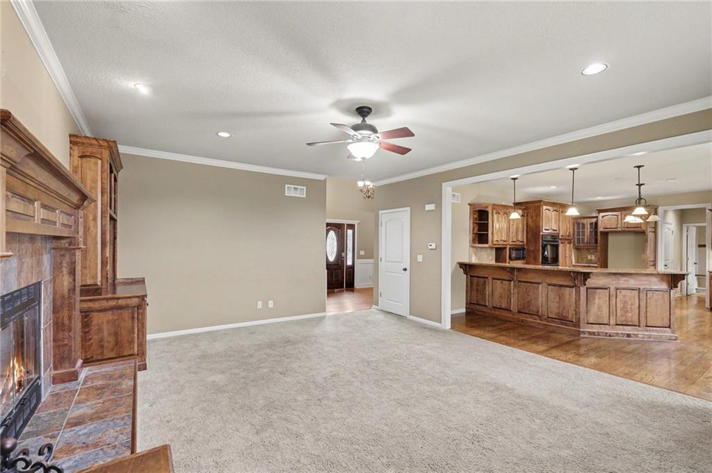 Don’t miss this incredible opportunity! This move-in ready home offers over 4,000 finished square feet with 4 bedrooms and 4.5 bathrooms, all in a fantastic location on a quiet cul-de-sac. Completely remodeled from top to bottom within the last 10 years, this home combines thoughtful updates with spacious living. The kitchen features granite countertops, custom cabinetry, a large pantry, and an extended countertop that can function as an island, making it ideal for cooking and entertaining. The formal dining room, located just off the kitchen, offers beautiful natural light through large windows. Just off the entry, the front room provides a perfect setup for a home office or study.Upstairs you’ll find generously sized secondary bedrooms and a convenient oversized laundry room. The expansive primary suite includes a sitting area with a fireplace and a private bathroom featuring a large walk-in shower with rain shower head and body sprayers along with a spacious walk-in closet. Bedrooms two and three share a Jack-and-Jill bathroom, while the fourth bedroom enjoys its own private bath. The finished walkout lower level is perfect for entertaining with a fireplace, full bar, and ¾ bath.Outdoor living shines with a deck that leads to a paver patio featuring a stunning stone fireplace, overlooking the large backyard with peaceful views. Additional highlights include zoned heating and cooling and a location within walking distance to the elementary school and Blackbob Park. This home truly offers space, comfort, and convenience in a beautiful setting.