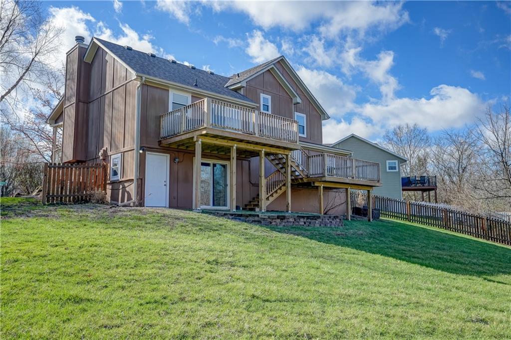 Welcome to 2501 NE Dale Hunter Trail! This 3 bedroom, 3 full bath home offers multiple living spaces and a layout that gives everyone room to spread out. Step inside from the covered front porch and you are greeted by soaring ceilings, a cozy fireplace, and a bay window that fills the main living area with natural light. The space flows comfortably into the dining area and kitchen. The kitchen features ceramic tile floors, stainless steel appliances that stay with the home, and sliding door access to the two tiered deck. Upstairs you will find all three bedrooms, including the primary suite with an en suite bathroom featuring double vanities and two closets. The hall bathroom is spacious and includes the laundry area conveniently tucked inside. Just a few steps down is the second living area with large windows that bring in great natural light. It works well as a family room, office space, or flexible living area depending on your needs. The lowest level offers a walkout basement with a third full bathroom, a third living area, and additional unfinished storage space. Outdoor living is just as enjoyable with a two tiered deck, patio space, and a large yard that backs to green space with no immediate neighbor behind you. All of this is tucked into a quiet cul de sac lot. If you have been looking for a home with space, flexibility, and a great Lee’s Summit location, this one is worth a look.