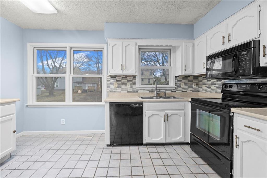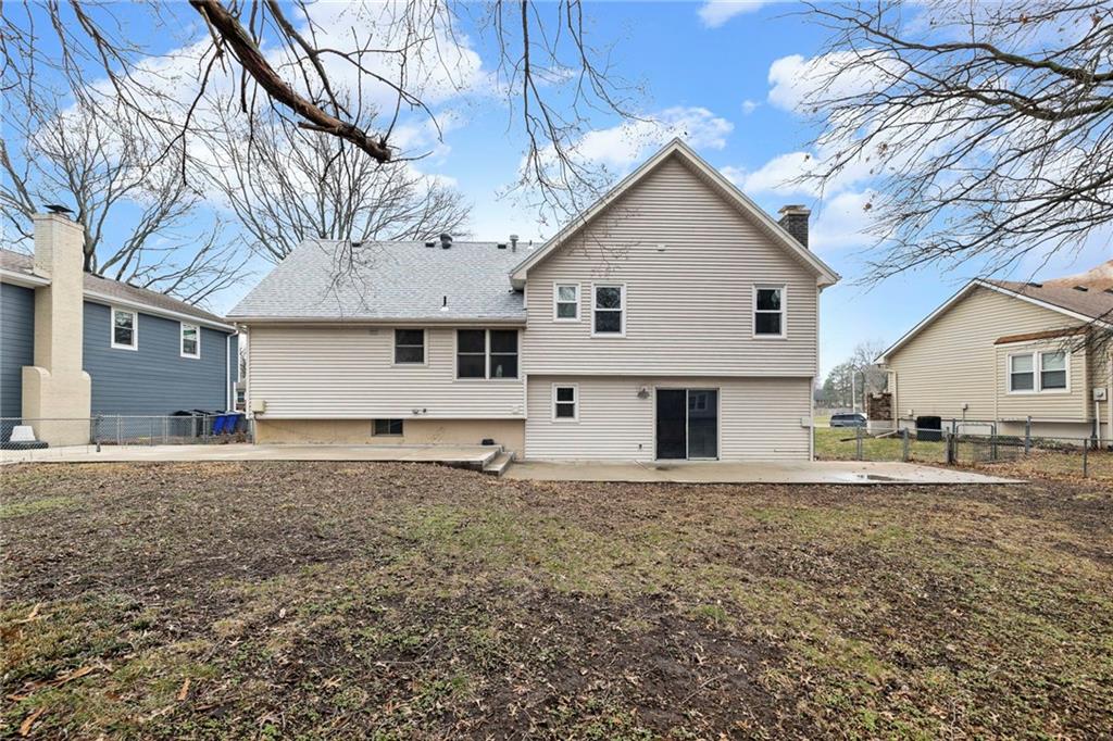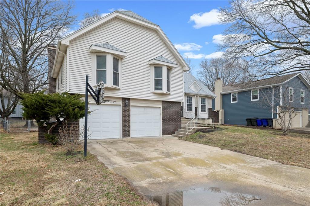 MOVE-IN READY!!!! Charming side/side split level gem nestled in Olathe! Step inside to a bright and spacious main living area bathed in natural light and showcasing luxury vinyl plank flooring. Functional kitchen is well-equipped with white cabinetry and pantry for ample storage and black appliances including range, dishwasher, and built-in microwave. Adjacent dining area for easy entertaining! Upstairs find a primary suite with private en-suite, 3 additional bedrooms and 2nd full bath providing plenty of space for everyone. Walk-out lower level (garage level) has a family room with cozy fireplace and built-ins. Access the spacious patio from here and enjoy time outdoors! Extending the living space is a rec room in the finished basement! This split-level layout creates natural separation between living and sleeping areas, offering both privacy and flexibility. This one is the perfect blend of comfort and value in a fantastic location just minutes to shopping, dining and major highway access! Bring your ideas and make this your own!