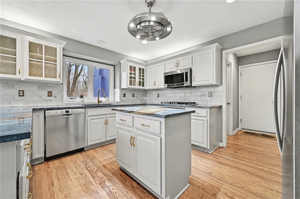 Looking for a 4-bedroom, 4.5-bathroom home in a neighborhood community with amenities? 5529 Sleepy Hollow Drive in Riss Lake Neighborhood is what you've been waiting for! This home is located at the end of a quiet cul-de-sac sitting on a 0.81-acre treed lot with no direct neighbor behind, creating a serene and private backyard setting! Greeted into the home in a foyer open to a home office with French doors, formal dining space, and formal living room with large windows overlooking two levels of decks. An updated kitchen with white cabinetry, granite countertops, & stainless-steel appliances including GE profile gas range & oven, microwave, dishwasher, & fridge. Kitchen open to a hearth room w/ see through fireplace , second dining space, and a cozy sunroom with deck access. Main level primary bedroom w/ dual walk-in closets, a door for deck access, & en-suite w/ dual vanities, separate tub, and walk-in shower. Upper-level hosts 3 additional bedrooms and two full baths. Full finished lower-level w/ second kitchen (granite counters, fridge, dishwasher, stove, & microwave) family room, theater room, & large unfinished space ideal for storage or a workshop area. 3 car garage. Neighborhood amenities include three pools, playground, tennis courts, pickleball courts, basketball courts, walking trails, & private stocked lake. Minutes from shopping, restaurants, schools, and downtown Parkville. OPEN HOUSE 3/7/26 (12:00-2:00 PM) and 3/8/26 (1:00-3:00 PM)