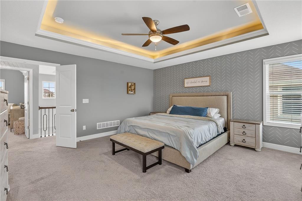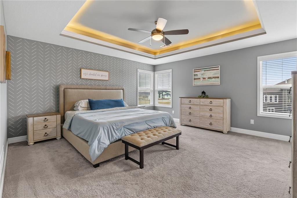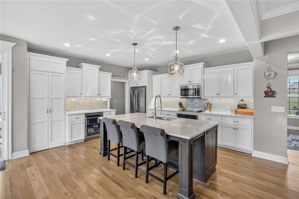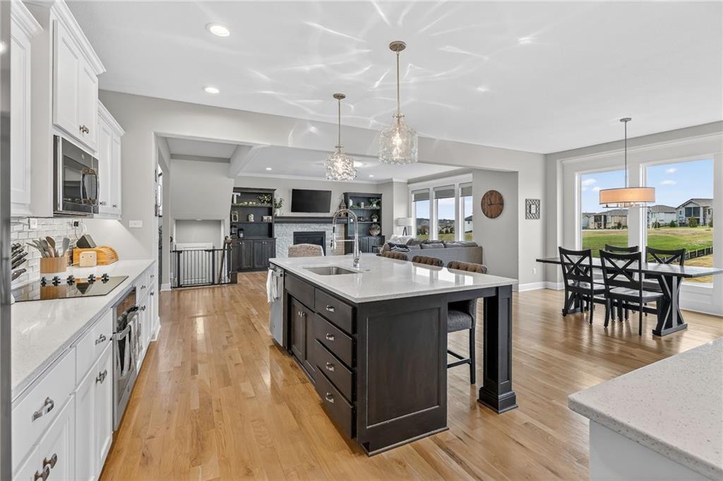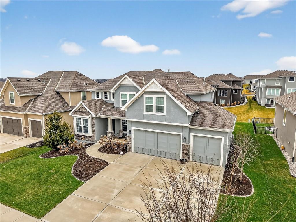 Enjoy the benefits of a newer home in a highly sought-after, recently built neighborhood without the wait of new construction. This well-maintained 2-story Rodrock “Irving” floor plan offers over 3,700 finished square feet with 4 bedrooms, 3 full and 2 half baths, a main-level office, and a finished daylight basement. The open main level features hardwood floors, a spacious great room with fireplace and built-ins, and a chef’s kitchen with quartz countertops, stainless steel appliances, a walk-in pantry, and an oversized island. Upstairs, you’ll find spacious secondary bedrooms and a luxurious primary suite with a spa-like en suite bath, along with the convenience of bedroom-level laundry. The finished lower level adds versatile living and entertaining space with room to customize to your needs. Mission Ranch community residents enjoy resort-style amenities including a pool, clubhouse, cardio center, trails, and play areas. Located just around the corner from Sunrise Point Elementary in the award-winning Blue Valley School District, with easy access to shopping, dining, and highways.