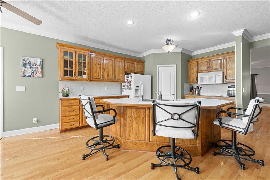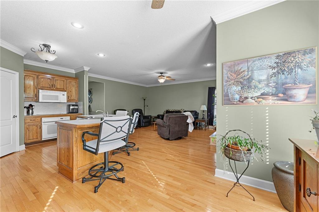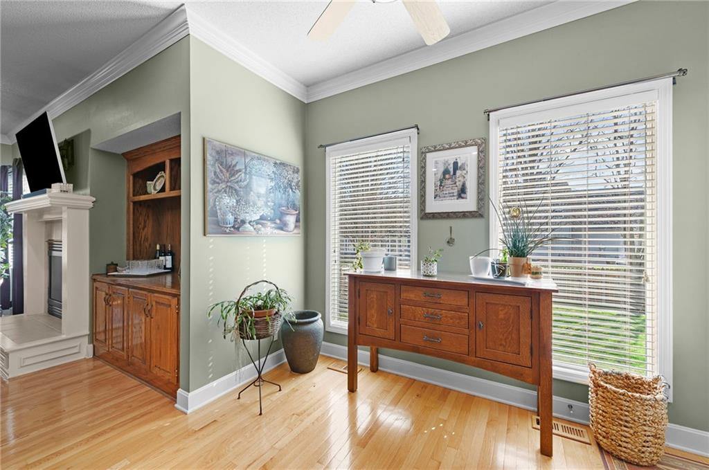 RARE OPPORTUNITY!! ENJOY EASY ONE-LEVEL LIVING IN THIS TRUE RANCH IN SOUTH OLATHE! STUNNING CURB APPEAL ON A PREMIUM CUL-DE-SAC LOT. Covered Front Porch to enjoy your favorite beverage. Gorgeous Wood Floors greet you and seamlessly connect this OPEN FLOORPLAN to the Great Room with Gas Fireplace flanked by built-ins. Light and Bright Kitchen includes Large Central Eat-In Island, Walk-In Pantry and bountiful counterspace! Step outside to a large lush private fenced yard and patio! Private owner's suite features walk-in closet with built-in dressers, over-sized tub, and separate shower. NEWER ITEMS INCLUDE: ROOF, GUTTERS, GUTTER GUARD, A/C! Exterior painted in 2022. Huge basement for future finish or storage. Neighborhood Amenities include Walking Trails, Multiple Pools, and Parks. Great Location just minutes to Heritage Park, GARMIN, shopping and dining!