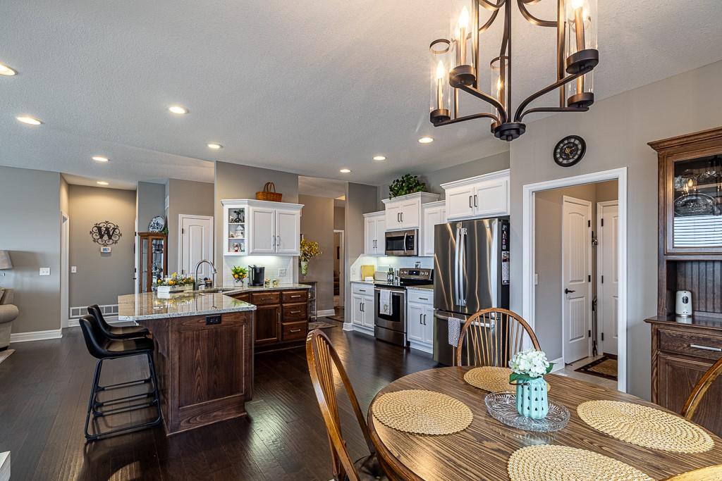 Annual HOA dues for Greystone Subdivision are $200 per year. In addition, townhome residents pay $550 quarterly, which covers lawn care, irrigation system/water & snow removal. Homeowners have access to the stocked ponds and common grounds. This beautifully maintained townhome features custom cabinetry, granite tops, wood flooring, attractive gas fireplace and screened in deck. All appliances stay including washer, dryer and near new refrigerator. Additional amenities include a 2 car attached garage, main level laundry room and full unfinished walk out basement, where there is plenty of space for hobbies, storage or future finished living area. Area rug in great room will stay and some shelving units in the basement. Quick possession available.