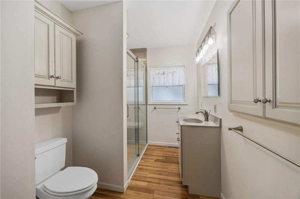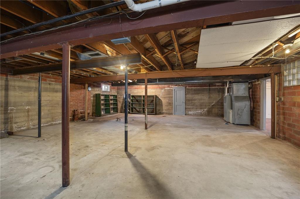 Step into timeless character and modern comfort in this beautifully preserved 1948 historic brick home offering 1,676 square feet of finished living space on the main floor - plus a stunning 17x8 sunroom with heated tile floors for year-round enjoyment. The main level features 3 bedrooms and 1 1/2 bathrooms, all accented by rich oak hardwood floors that carry warmth and charm throughout the home. The full bathroom is a true showpiece, showcasing a luxurious onyx walk-in shower and a matching onyx vanity countertop - elegant, durable, and unforgettable. The heart of the home presents a bright open-concept kitchen and living space, blending classic craftsmanship with modern upgrades. You'll love the oak cabinetry, high-end appliances, and European-import "New Lady's Dream" countertops that make a statement both in style and function. Main-floor laundry adds everyday convenience, and all appliances - including the stackable washer and dryer - remain with the property. Downstairs, the full unfinished basement provides exceptional potential and includes an additional laundry hookup, plus a shower and water closet. Major updates have already been completed, and the original blueprints, manuals, and paperwork have been meticulously preserved - a rare and valuable bonus for a home of this era. Outside, a 28x40 three-car detached garage (added in 1995) offers abundant space for vehicles, hobbies, or storage. Step onto your expansive 20x18 wooden deck and take in views of the beautifully landscaped .67-acre yard. The current owners have thoughtfully designed an outdoor oasis featuring mature Oak, Ash, Pecan, and Cherry trees, vibrant perennial flowers, and winding stone walkways that create the feeling of your own private secret garden. Historic charm. Thoughtful updates.