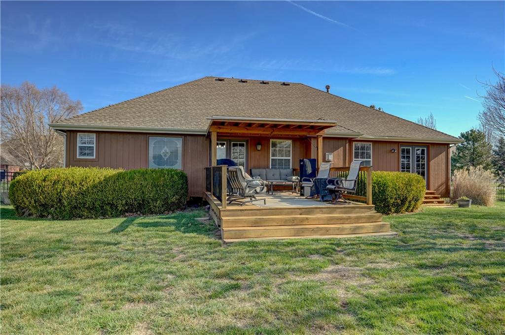 Looking for lake living? Nestled in the highly sought-after Raintree Lake community, this well-maintained home offers over 3,000 square feet of living space, combining comfort, character, and recent updates. With a new roof, fresh exterior paint, and a newly added covered deck, the exterior provides both peace of mind and the perfect setting for outdoor living. A private backyard gate offers direct access to neighborhood walking trails and a nearby community pond. Inside, you’ll find hardwood floors, custom built-ins, and rich wood accents that add warmth and timeless appeal. Vaulted ceilings and an open, inviting layout create a bright and spacious feel, ideal for both everyday living and entertaining. The home features four bedrooms and four full bathrooms, offering flexibility and room to spread out. A dedicated office with French doors provides an ideal work-from-home setup and can easily function as a fifth bedroom, complete with a spacious walk-in closet and direct access to the backyard. The primary suite offers a relaxing retreat with dual vanities, a jetted tub, and generous closet space. Throughout the home, you’ll appreciate the abundance of storage and well-sized closets designed for practical living. Located in Raintree Lake, this home offers not just a place to live, but a lifestyle—complete with community amenities, scenic surroundings, and everyday convenience right outside your back gate.