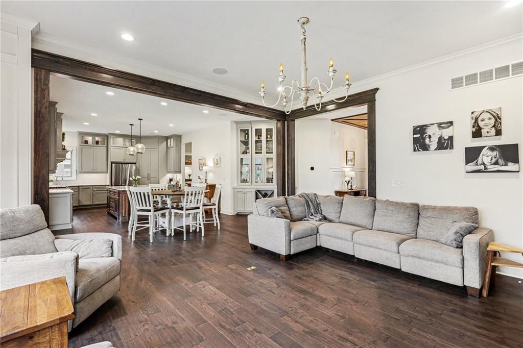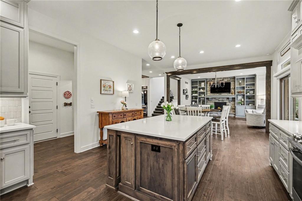 Welcome to the sought-after Makenna floor plan, designed w/ exceptional finishes, upgrades & details throughout. This custom-built, two-story home recently refreshed w/ new interior paint makes a stunning first impression w/ double iron entry doors that open to a grand foyer featuring a custom milled ceiling. Formal living room, complete w/ french doors, & dining room w/ beautiful built-ins & woodwork & living room is centered around a striking stone fireplace adding warmth and character. Kitchen is designed for everyday living and entertaining w/ premium appliances, gas range, a pasta arm, quartz countertops, lighted upper cabinets & oversized island. It flows easily into stylish mudroom + convenient powder bath + large pantry. Upstairs, the spacious primary suite w/ an oversized walk-in closet and a luxurious en-suite bath with soaker tub, double vanities and large walk-in shower. 3 additional bedrooms and two full bathrooms complete the second level. Don’t miss custom built-ins, vaulted ceilings and ceiling detail! The finished lower level provides incredible flexibility with a second living space, full kitchen, additional bedroom, office, and bathroom, making it ideal for guests or multi-generational living. The backyard is designed for entertaining, a covered patio off the kitchen features a fully-equipped outdoor kitchen with a grill, beer tap, side burner, and generous storage. A firepit, full fence and established trees and shrubs provide added privacy and create a relaxing outdoor retreat. Large 3 car garage. Upgraded carpet, stair spindles, soffit lighting on the exterior, landscape lighting, barn doors to laundry room, windows treatments already in place, smart thermostat, radon system. In the highly desirable Stonebridge Trails community, residents enjoy access to 4 neighborhood pools, walking trails, clubhouse, playground, tennis courts, & more. Home offers the perfect combination of comfort, style, & amenities. Former model home checks all the boxes!