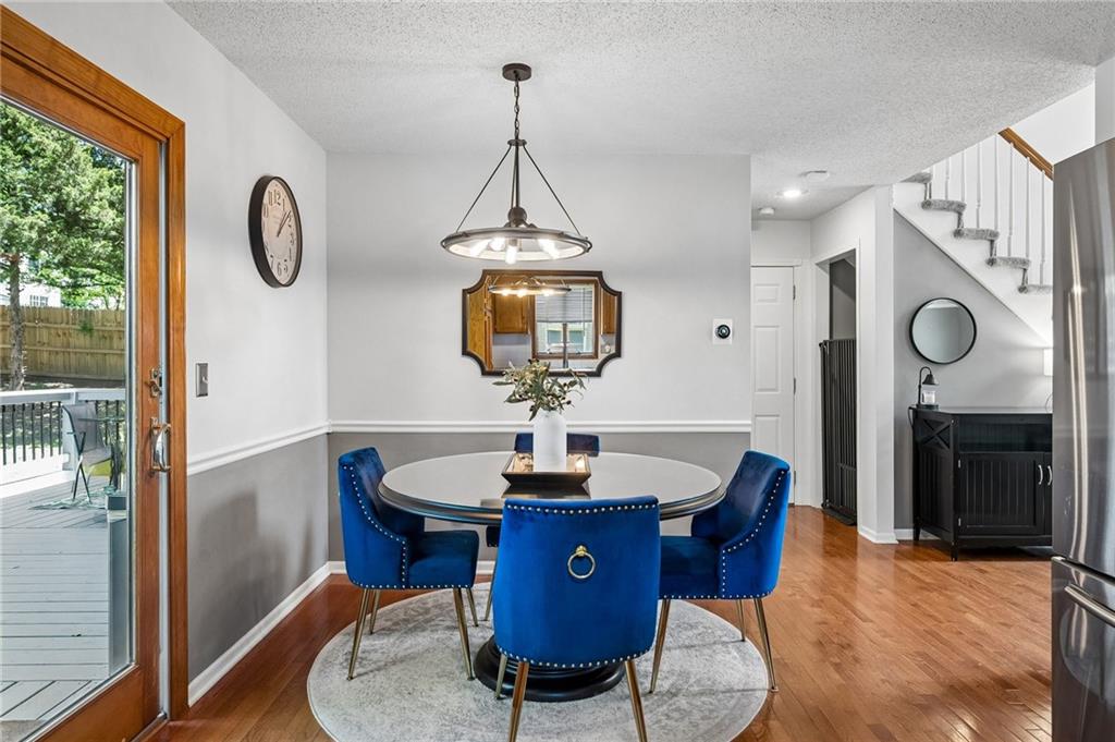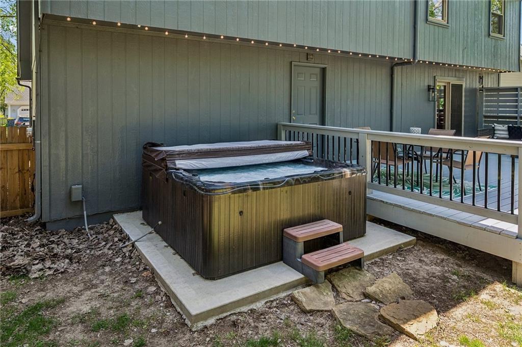 The most charming curb appeal and meticulously maintained 3-bedroom home with 2 full and 2 half baths in the highly coveted Park Hill School District! The light-filled living room offers skylights and a cozy fireplace. Eat-in kitchen features beautiful wood floors, dedicated pantry space, and direct access to backyard. The large deck overlooks fenced backyard with expanded area for seating, dining & entertaining plus your own hot tub that stays! Privacy screen and ambient lighting line the back perimeter to create a warm, cozy atmosphere. Retreat to the primary suite which features cove ceiling and a private ensuite bath w/double vanity and walk-in closet. Two additional bedrooms and full bath on second floor. The finished lower level provides flexibility with a comfortable family room and a non-conforming 4th bedroom or office nook along with additional half bath. Generous unfinished space is perfect for storage. Permanent Govee Lighting on exterior front of home with endless options to celebrate every holiday! Water purifier/softner, Samsung "family hub" wifi kitchen fridge manage your family's calendars, stream music, display artwork also stays! Enjoy everything this home has to offer...A fabulous property in prime location!
