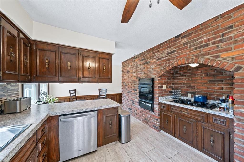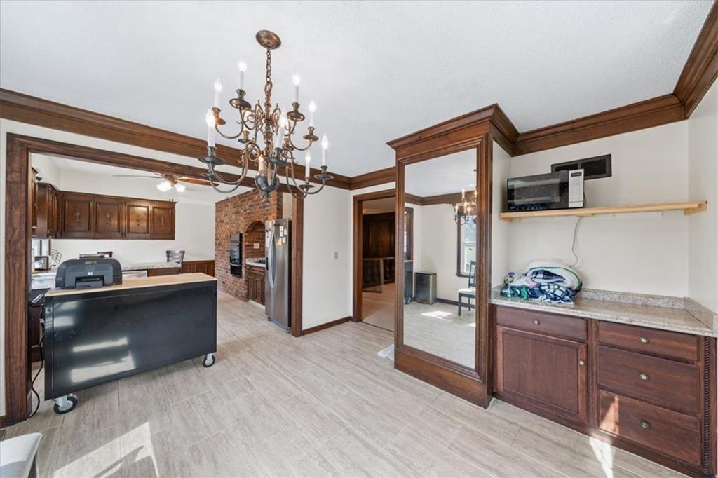 Imagine pulling onto your impressive private driveway and arriving at a home that immediately feels different from the rest. Set on a sprawling corner lot in sought-after Merriam, 10105 W 55th St welcomes you with undeniable curb appeal and the kind of character that simply can’t be replicated. Step inside and you’ll feel the craftsmanship right away. Rich crown molding, raised paneling, and custom hand-crafted woodwork bring warmth and timeless style to every space. Built-ins and clever hidden storage are tucked throughout the home, giving it that satisfying sense that every detail was thoughtfully designed. Enter your kitchen to enjoy a cozy breakfast area on one side and a formal dining space on the other. Picture summer evenings on the large covered deck just off the kitchen. The fully fenced yard offers multiple outdoor entertaining spaces, including a private patio with a fountain and a lush grassy area for gatherings or quiet moments. The primary suite offers its own patio walkout to the covered deck—perfect for morning coffee or unwinding at the end of the day. Head downstairs and you’ll find even more personality and versatility. A beautifully detailed staircase leads to a cozy bench nook framed in brick—an inviting moment of charm before stepping into the lower-level bonus spaces to be used as a sewing/craft room, office, or however you decide...the world is your oyster here! Big-ticket items are already taken care of, so you can move in with peace of mind: newer roof, HVAC, water heater, and double-pane windows all for you to enjoy worry-free. Additional practical features include a workshop with desk and sink, a laundry room with built-ins, an oversized garage, and a lawn-mower closet with exterior access. A unique Merriam home with timeless style, plenty of space, and exceptional indoor-outdoor living—ready for your next chapter.