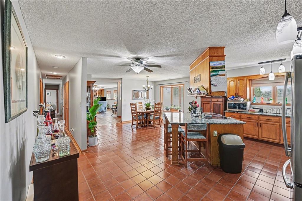 Beautiful 3-bedroom, 2.5-bath energy-efficient ranch home set on 19± picturesque acres offering the perfect balance of peaceful country living and convenient highway access. This well-maintained home features an inviting open floor plan designed for comfort and gathering. The gorgeous country kitchen with Granite counter tops is the heart of the home, complete with updated appliances, a breakfast bar, and an incredible kitchen island ideal for large family gatherings or smaller intimate meals. The spacious great room is sure to impress with its stone wood-burning fireplace with insert, built-in shelving, and large south-facing windows that flood the space with natural light while helping keep utility costs low. Energy efficiency is a key feature of this home, making it both comfortable and economical year-round. Step outside onto the covered front patio where you can enjoy beautiful sunrises and sunsets, listen to the rain, or relax to the sounds of birds and nature. The property offers plenty of room to spread out and enjoy the outdoors, including a spring-fed pond, several barns and outbuildings, and wide open acreage with endless possibilities. If garage space is a priority, this home delivers with a large, tandem 3-car garage featuring built-in storage shelves and plenty of room for vehicles, equipment, or workshop space. This unique opportunity includes 8 greenhouses along with two Morton buildings for additional storage or workspace. In recent years the sellers have scaled back the nursery operations, running the business with just the two of them, leaving tremendous opportunity for a new owner to grow and expand. Despite the quiet rural setting, the property offers excellent access to K-32, Highway 24-40 between Bonner Springs and Lawrence, and I-70, making it easy to reach nearby towns, shopping, and commuting routes. This exceptional property offers space, privacy, income potential, and convenience all in one remarkable package