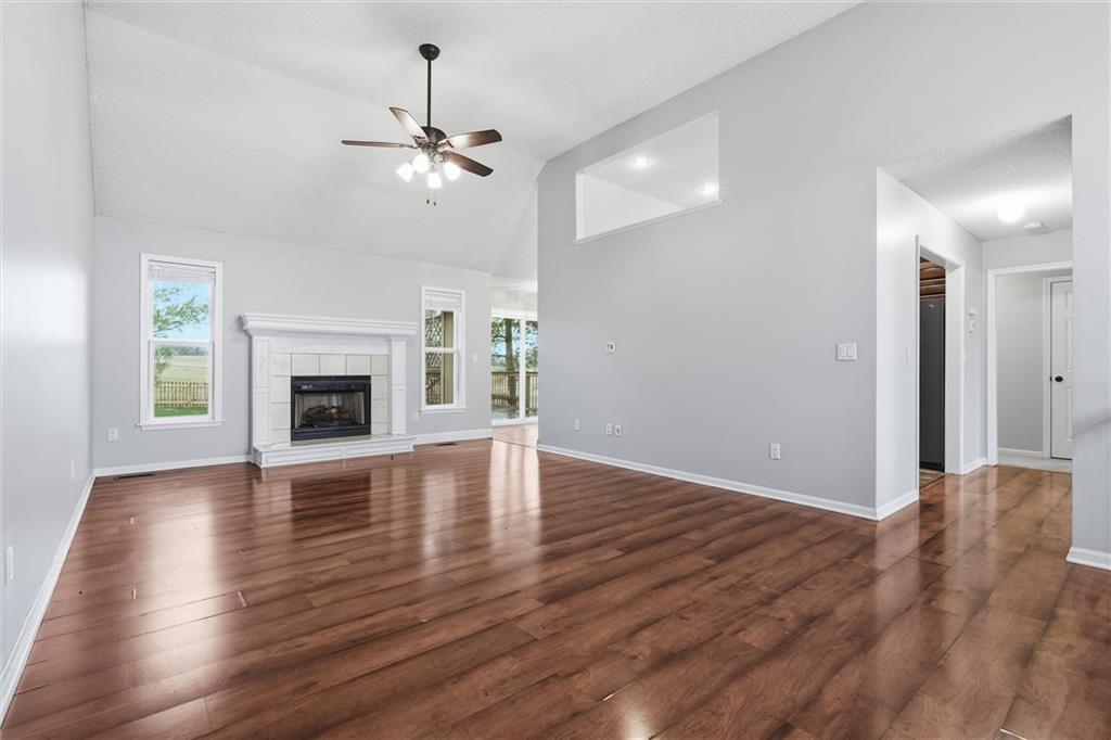 Spacious 4-bedroom, 3-bath home in the Hills of Shannon community offering approximately 2,431 square feet of living space. The main living area features a fireplace and abundant natural light, flowing into the kitchen with wood cabinetry, generous counter space, stainless steel appliances, and access to the deck. The primary suite includes a private bath with double vanity, glass-enclosed shower, garden tub, and a large walk-in closet. Additional bedrooms provide flexible space for guests, work, or hobbies. Enjoy the expansive backyard and outdoor deck, ideal for relaxing or entertaining. Attached 2-car garage provides convenient parking and storage. Located in Smithville with easy access to Highways 169 and 92, shopping, dining, and Smithville Lake, and less than 20 miles to downtown Kansas City.