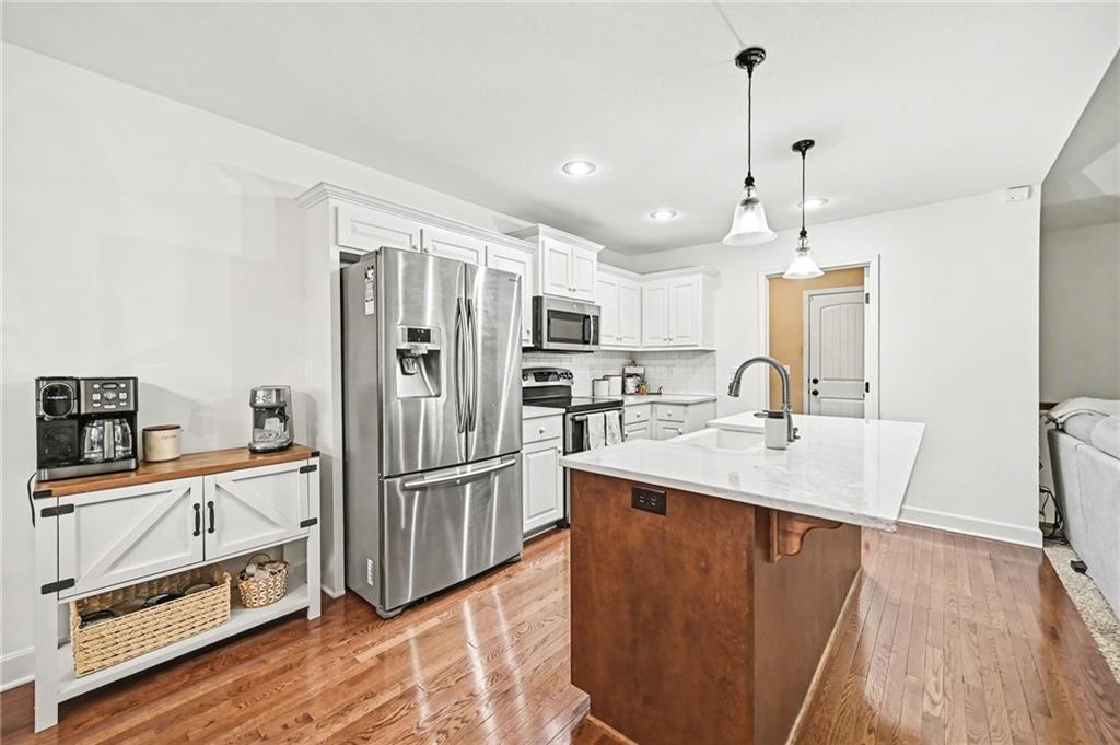 Beautiful 4-bedroom, 3-bath ranch backing to mature trees in the desirable Genesis Place at Green Hills neighborhood. Fresh paint brightens the main living area, and the open layout offers comfortable spaces for both everyday living and entertaining. The kitchen features quartz countertops, stainless steel appliances, and white cabinetry, with the dining area opening to a screened-in deck overlooking the wooded backyard—a perfect spot to relax and enjoy the view. The main level includes a spacious primary suite with cathedral ceiling, updated bath, and walk-in closet, plus two additional bedrooms and convenient main-level laundry. The finished daylight lower level adds even more living space with a fourth bedroom, full bath, and access to the lower patio-ideal for guests or a private retreat. Enjoy the neighborhood pool just a short walk away and quick highway access that makes getting anywhere in the city easy.