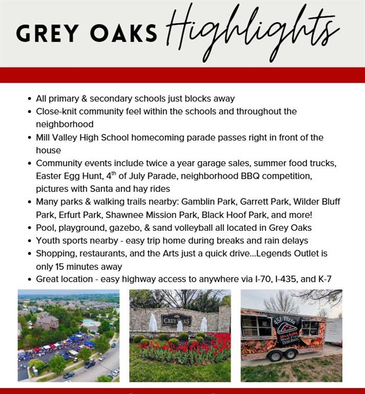LUXURY Lambie-Geer plan in sought after Grey Oaks Eagle View. Just blocks to all schools. All NEW windows, NEW roof, NEW garage doors, NEW gutters. NEW Lighting. NEW carpet. NEWLY finished hardwood floors. NEW paint inside and out. STANDOUTS: Huge Owners suite with spa-like bathroom & endless closet. DON’T MISS the huge DAYLIGHT BASEMENT with FULL BAR & THEATER! Magnificent split-landing staircase overlooking two large living rooms, island-kitchen, dining room & spacious entry, plus a large front office. HUGE CHEF’S KITCHEN: large island, double ovens, large pantry. Plenty of space for gatherings with friends & family. Soaring ceilings, huge windows, dual fireplaces, deluxe trim work & details. Step outside to custom flagstone patio with gas firepit & HUGE FENCED YARD. BRIGHT & NEW INSIDE: new paint, new carpet, redone wood floors, new lighting, new toilets & faucets, everything is done. Primary Suite with large sitting area, double-vanity, jet tub, heated floors, & endless closet space. You will totally FLIP over the DAYLIGHT finished basement with full bar, THEATER/MEDIA ROOM (or convert to a game room), large rec area, plus bedroom, full bath, & still tons of storage - IT HAS IT ALL! OUTSIDE IS A SHOWSTOPPER: Stately pillared front porch, elegant bay windows, and sophisticated metal roof accents that command attention. NEW ROOF, ALL NEW WINDOWS, NEW GUTTERS, NEW GARAGE DOORS, NEW PAINT - WOW! This HUGE LOT is a prime coveted spot right on the Mill Valley Homecoming Parade Route. GREY OAKS: Neighbors out with pets stopping to visit, driveway sit-downs, fenceline convo’s & backyard firepits - Grey Oaks is a true COMMUNITY. Unmatched location, great community feel and activities, K-12 SCHOOLS right down the street - also just blocks to Sacred Heart School. Large pool, sand volleyball, playground, & shelters. Holiday Hayride, Egg Hunt, July 4th Parade, BBQ Competition & Fun Run, food trucks, & MORE.