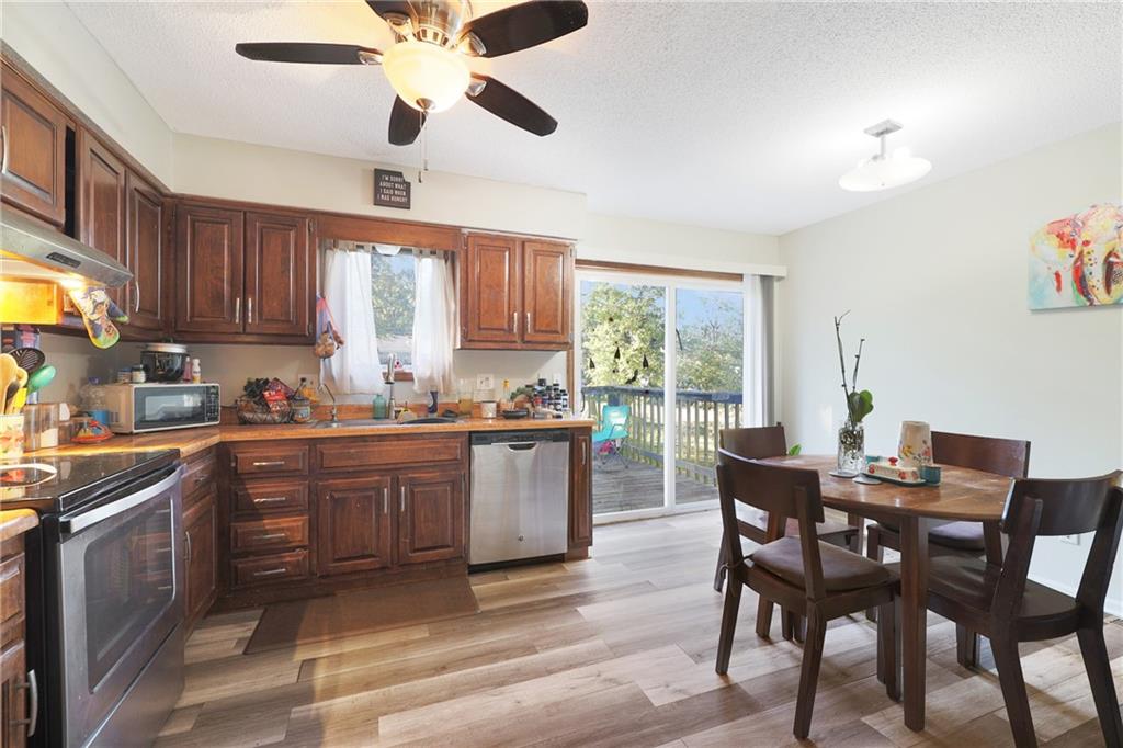 Well-maintained ranch half duplex located in a quiet cul-de-sac in Harrisonville! This 3-bedroom, 2 full bath home offers comfortable main-level living with a finished walk-out basement for additional living space. The inviting living room features a cozy fireplace, perfect for relaxing evenings. Enjoy outdoor living with both a wood deck and a lower patio area. The home also includes a one-car garage and a long driveway providing plenty of parking. Major updates include a 6-year-old roof and newer water heater. Convenient location with easy access to local amenities while still offering a peaceful neighborhood setting.