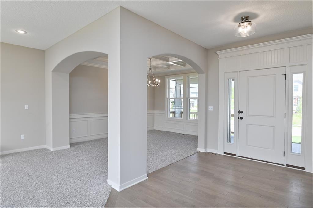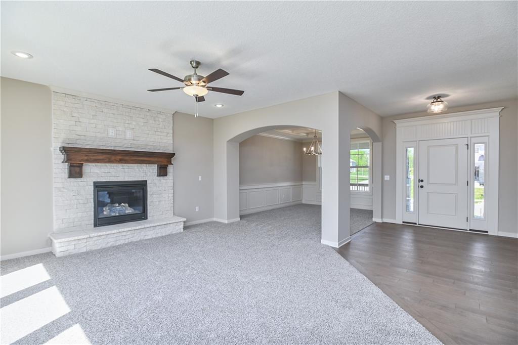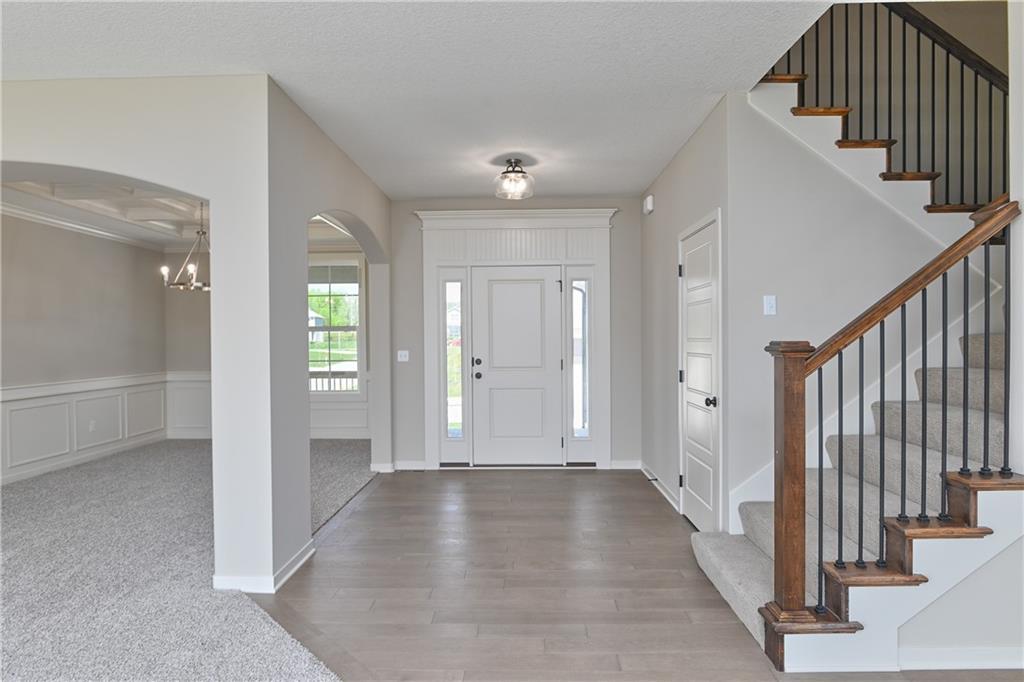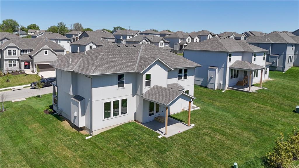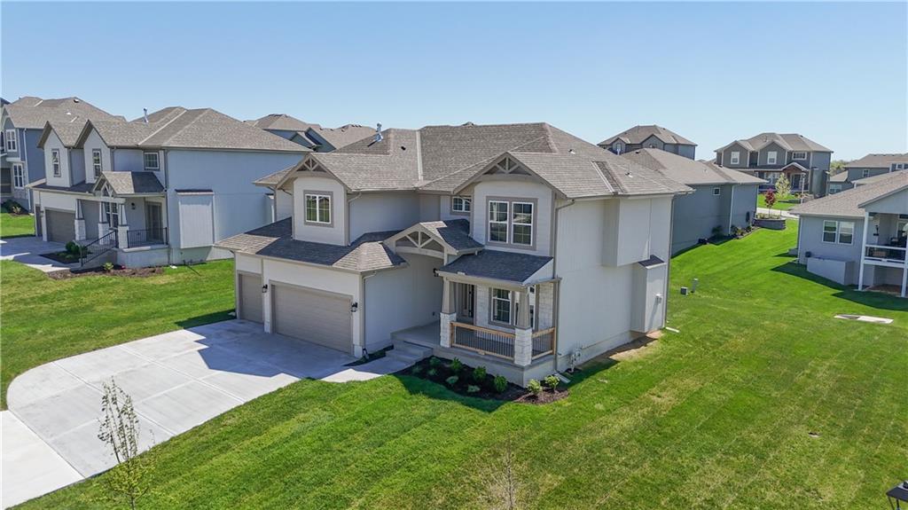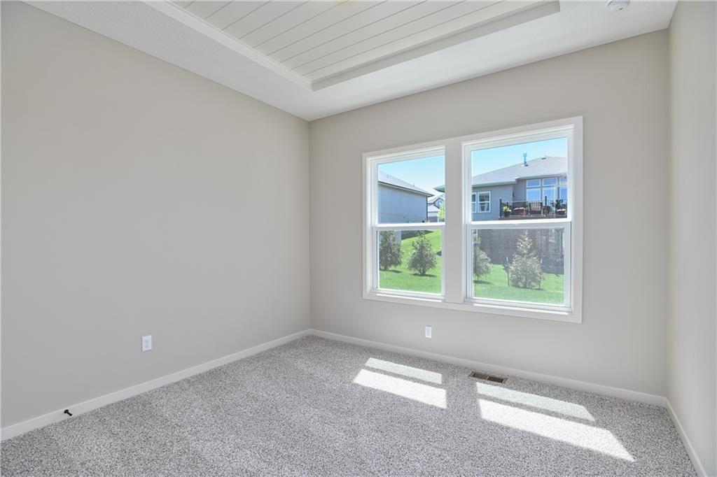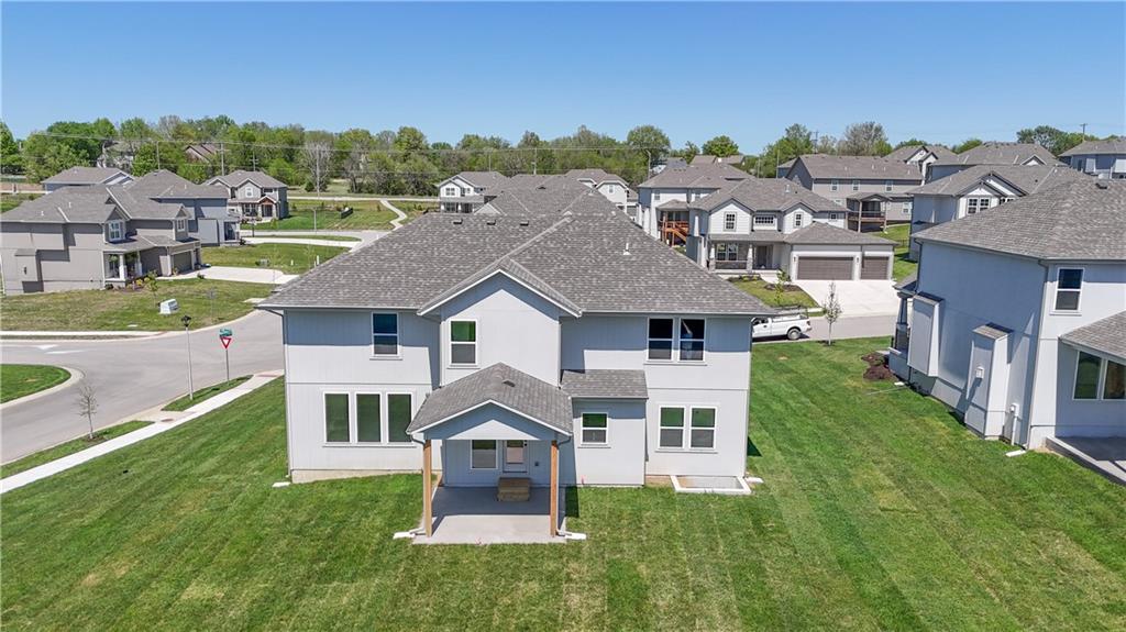 The popular Levi II by Prieb Homes is now available on a beautiful flat lot. The open-concept main floor features a spacious kitchen and breakfast area, a larger granite center island with ample seating. Kitchen offers soft close doors and drawers. Enjoy versatile living with a main floor flex room—perfect for a home office or 5th bedroom—plus a mud room with boot bench and entry closet. Upstairs, the expanded primary suite boasts a separate sitting area, larger walk-in closet for 2 different sections, and an upgraded primary bath with a freestanding tub. The laundry room has been enhanced with additional workspace, and the open loft with window provides extra living space. Located within walking distance to Lake Olathe, this home also offers access to neighborhood amenities including trails, a pool, and playground. Don’t miss your chance to own this upgraded and spacious home in a prime location!