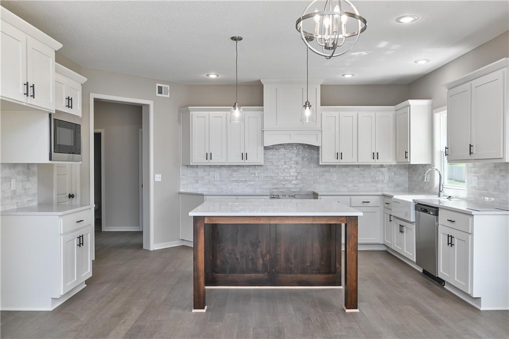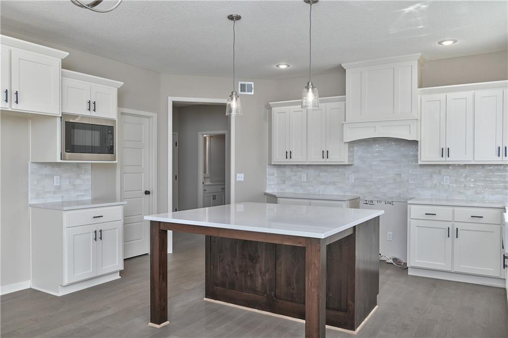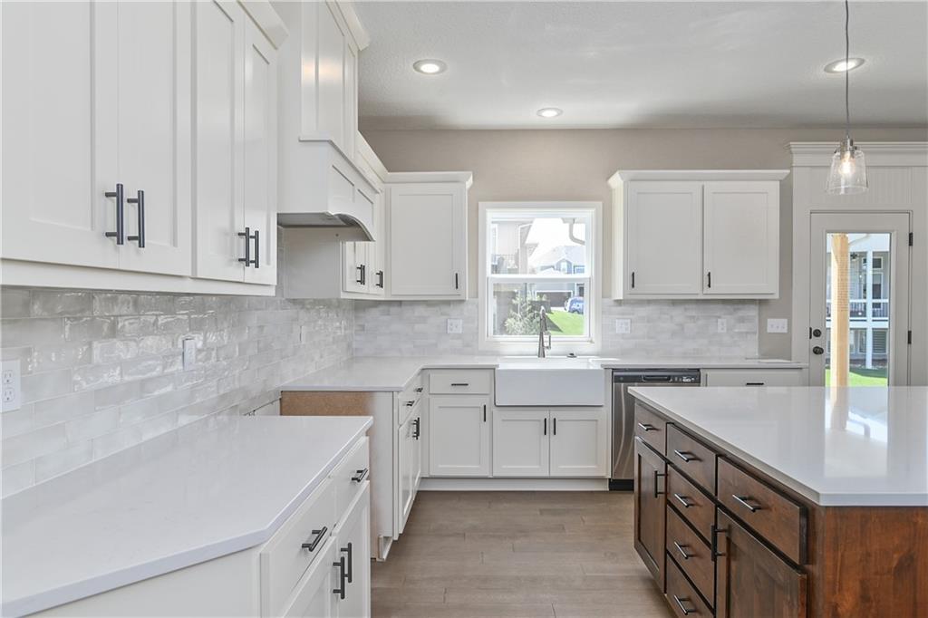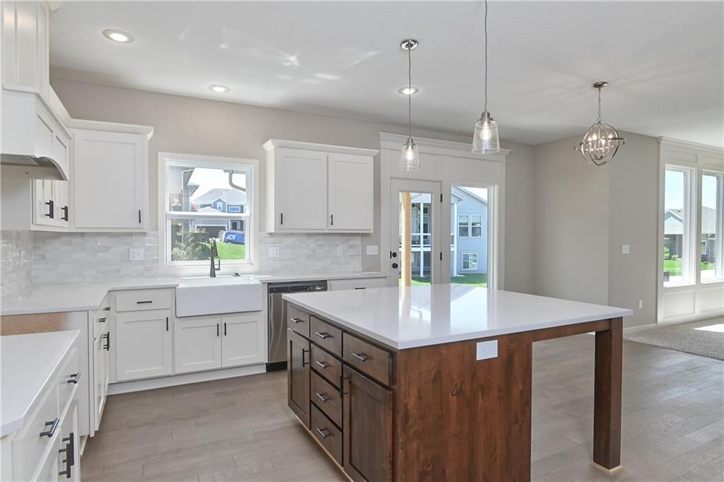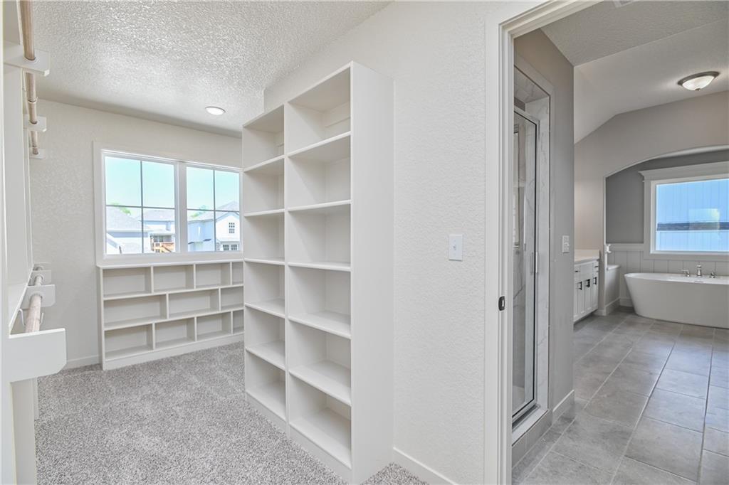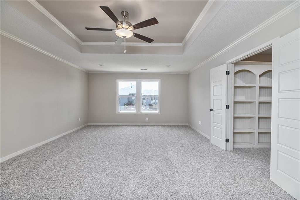 The popular Levi II by Prieb Homes is now available on a beautiful flat lot. The open-concept main floor features a spacious kitchen and breakfast area, a larger granite center island with ample seating. Kitchen offers soft close doors and drawers. Enjoy versatile living with a main floor flex room—perfect for a home office or 5th bedroom—plus a mud room with boot bench and entry closet. Upstairs, the expanded primary suite boasts a separate sitting area, larger walk-in closet for 2 different sections, and an upgraded primary bath with a freestanding tub. The laundry room has been enhanced with additional workspace, and the open loft with window provides extra living space. Located within walking distance to Lake Olathe, this home also offers access to neighborhood amenities including trails, a pool, and playground. Don’t miss your chance to own this upgraded and spacious home in a prime location!