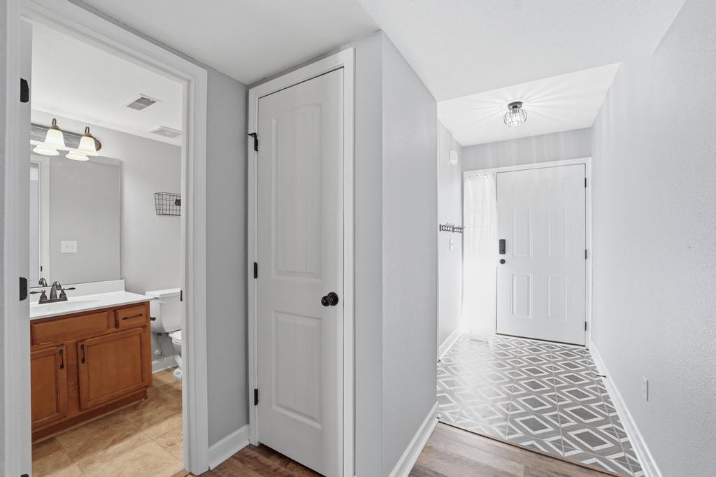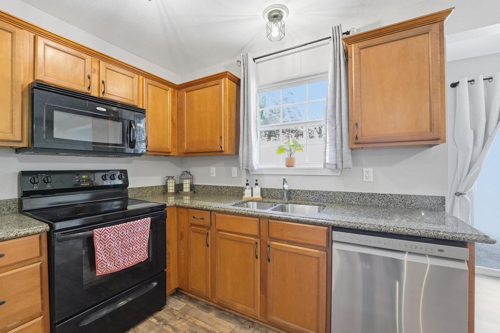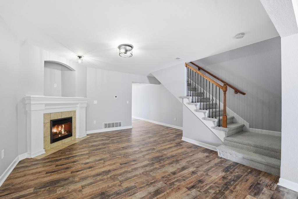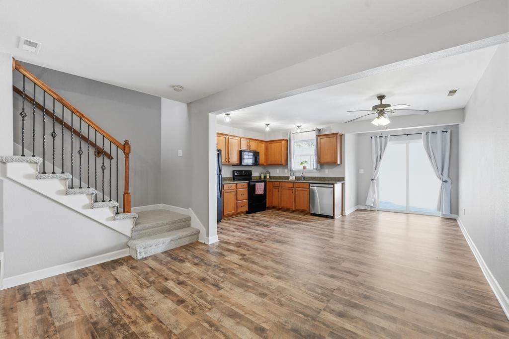 Welcome to this move in ready townhouse with 2 large bedrooms and 2.5 bathrooms! This home has been freshly professionally painted & new flooring has been installed. The location is near many walking trails, shopping, dining, schools and is a super short drive to the airport! The living space feels airy with the kitchen / dining and great room open to one another with the continuous LVP flooring and consistent paint scheme. The great room feels cozy during the winter with the gas fireplace! The main level has a storage closet as well as 1/2 bath for guests. Access to the backyard and a private patio are through the slider doors. The trees in the backyard provide the privacy you will love! You will want to start and end your days on the back patio, which could also be a great entertaining space. The primary bedroom upstairs has a walk-in closet, vaulted ceiling fan, accent wall and the ensuite bathroom is so convenient! Just a few steps from both upstairs bedrooms is the hall bath with a nice laundry closet. The washer and dryer are included! This townhome is just a short distance to the community pool, clubhouse, and outdoor play area. HOA also provides lawn care. This well-cared for townhouse is ready for new owners! Taxes are estimated as well as square footage.