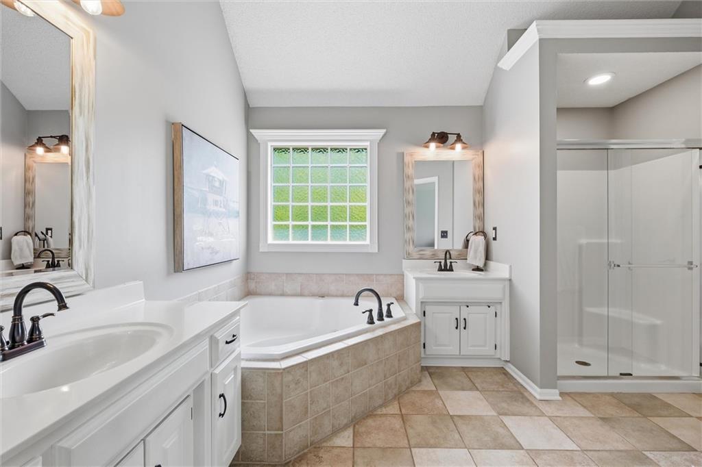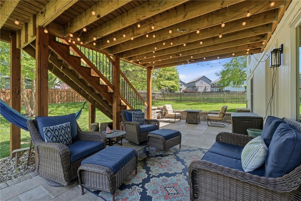 Welcome home to this move-in ready home situated on a quiet cul-de-sac and packed with updates inside and out! This beautifully maintained home offers peace of mind with a long list of recent improvements and designer touches including a new roof, gutters, fresh exterior paint, new shutters, new garage doors and professional landscaping in 2024. Newer windows, too! Step inside to find newly refinished hardwood floors, fresh interior paint and new stair carpeting. The main level has a spacious kitchen with professionally painted cabinetry, a walk-in pantry with a custom barn door and upgraded appliances. This home features TWO cozy fireplaces, perfect for relaxing evenings and entertaining. The walk-out lower level provides great natural light in the large second living space that features a wet bar. Lower level also has two bedrooms and the 3rd full bathroom. Step out back to a very spacious, professionally designed, partially covered patio, fenced yard and deck with pergola. This home is within walking distance to the neighborhood swimming pool and tennis courts and the newly designed Garrett Park. Located in the highly sought De Soto school district. This one is gorgeous and a must see!