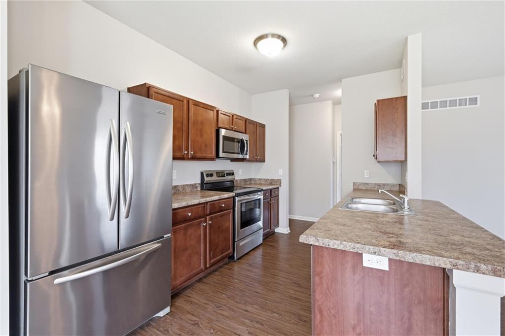 Built in 2018, this contemporary ranch-style residence is designed for the modern family, featuring an efficient and inviting floor plan that spans approximately 1,510 square feet of living space. From the moment you pull into the attached two-car garage, the home's meticulous maintenance and curb appeal in the St. John’s Highlands neighborhood make a lasting first impression. The interior of the home is bathed in natural light, highlighting a neutral and soothing color palette that complements any décor style. The heart of the home is a spacious, open-concept kitchen and living area, perfect for busy weekday mornings or relaxed weekend gatherings. The kitchen is a chef’s delight, equipped with elegant wooden cabinetry, ample counter space for meal prep, and a suite of modern stainless steel appliances, including a dishwasher, microwave, and refrigerator. The seamless transition from the kitchen to the dining and living areas ensures that the cook is always part of the conversation.With three well-appointed bedrooms and two full bathrooms, there is plenty of room for everyone to find their own corner of comfort. The primary suite serves as a private retreat, complete with a generous closet and an ensuite bathroom featuring dual sinks and a classic bath/shower combination. The additional two bedrooms are versatile, making them ideal for children, guests, or a dedicated home office. For those needing extra storage or a future recreation space, the large basement provides a blank canvas to expand your living area to suit your family's unique needs.Stepping outside, the 0.18-acre lot offers a manageable yet spacious backyard, providing an open space for children to play, pets to roam, or for hosting summer barbecues under the Kansas sky. Situated in a community known for its family-friendly atmosphere and access to highly-rated Gardner schools, this home provides the stability and convenience families crave.