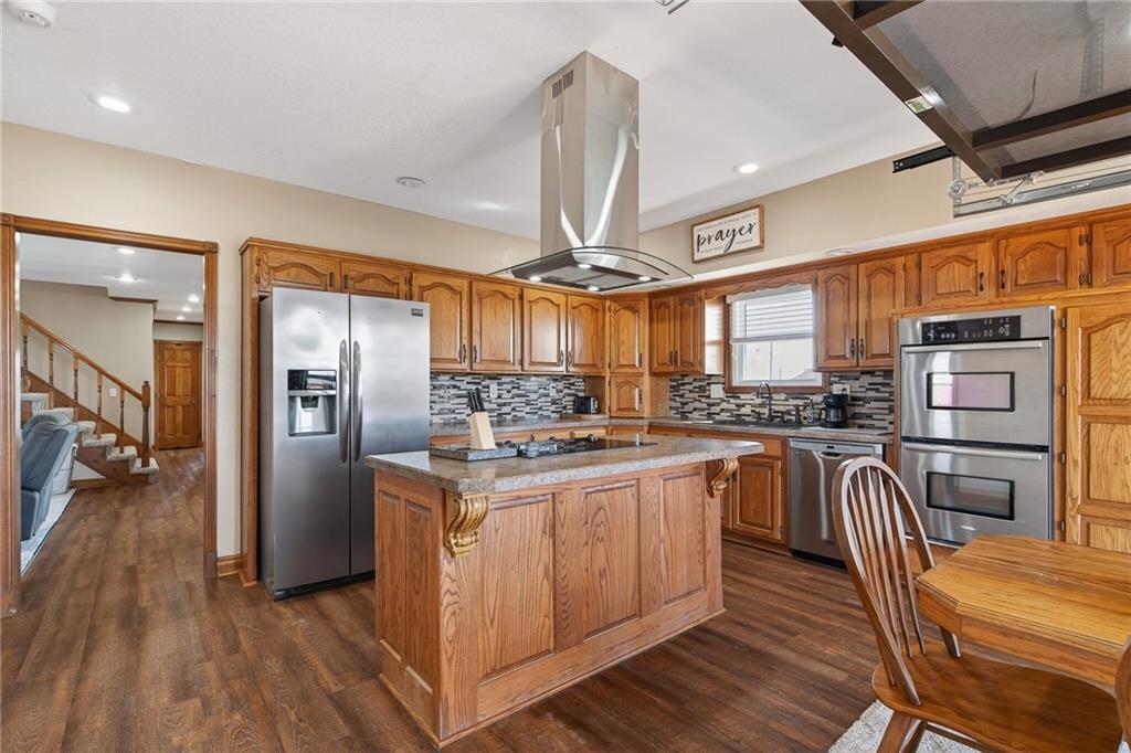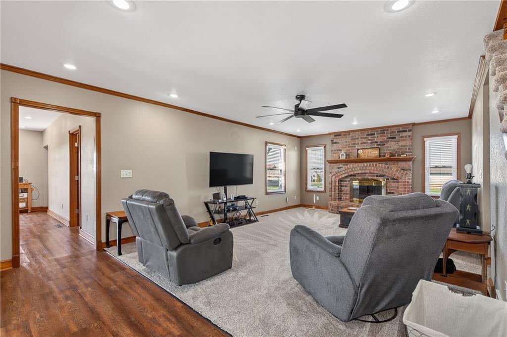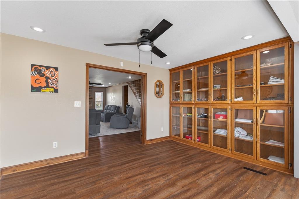 Desirable location on 7.56 acres at the edge of town with park like setting! Property offers plenty of room to enjoy the outdoors and a pond for fishing! The recently added 40x60 shop has finished area perfect for an office with a full bath and would be a great opportunity for a home based business or car enthusiast! Includes set up for RV use! The home welcomes you with warmth and charm and offers lots of updates within the last 2 years to include roof, windows on main level and basement, carpet in living room, master bedroom & stairway, storm doors, fencing & more! A unique feature added in the kitchen dining area is an overhead door with screen that brings the outdoors in and walks out to the new deck overlooking the view of the property! A rare find! Lovely home, land , pond, shop and convenient location close to schools offers so many opportunities including development potential.