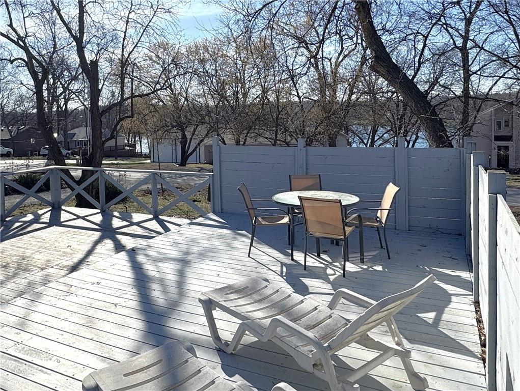 Enjoy lake views with this 1st tier property in Linn Valley Lakes. Plenty of outdoor living space with the enormous deck! A top to bottom rehab was completed in 2019 and the home still looks fresh and new. An oversized 24 x 20 garage with concrete floors and electricity is tucked behind the home! Open floorplan on the main floor has lots of sunlight and great views towards trees and the main lake. There is one bedroom and a bathroom on the main floor. Upstairs, the Primary bedroom is huge and has a private martini deck with views of the lake. A 3rd bedroom, 2nd full bath and a bonus loft area are also located on the 2nd floor. The fenced back yard provides a nice area for pets. This great property is located on a paved road and is connected to public sewer and water lines. The clubhouse, pool and sand beach are a 1/2 block away and the boat ramp for launching your boat or jet ski is just down the street.