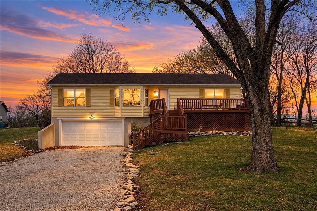 Wake up to beautiful lake views in this well-maintained 3-bedroom, 2-bath raised ranch located in the private gated community of Linn Valley Lakes. Offering 1,464 square feet of main-level living, the home also features a 2-car garage and unfinished basement below, providing excellent storage and future finishing potential. One of the most unique features of this property is the rare double lot, offering additional space and flexibility for the next owner. The second lot currently includes a separate driveway and storage shed and may provide potential for a future outbuilding, guest home, or investment opportunity (buyer to verify options with county and POA). Inside, the home offers a comfortable and functional layout with lake views from both the living room and the front deck, creating the perfect setting to relax and enjoy the scenery. The property has been well cared for over the years, while still allowing room for a new owner to add their own personal touches. Located near the dam and just minutes from the golf course, this home offers convenient access to the many amenities Linn Valley Lakes is known for, including boating, fishing, swimming, golf, and year-round recreational activities. Whether you're looking for a full-time residence, weekend getaway, or investment opportunity, this property offers a unique chance to enjoy lake life with room to grow.