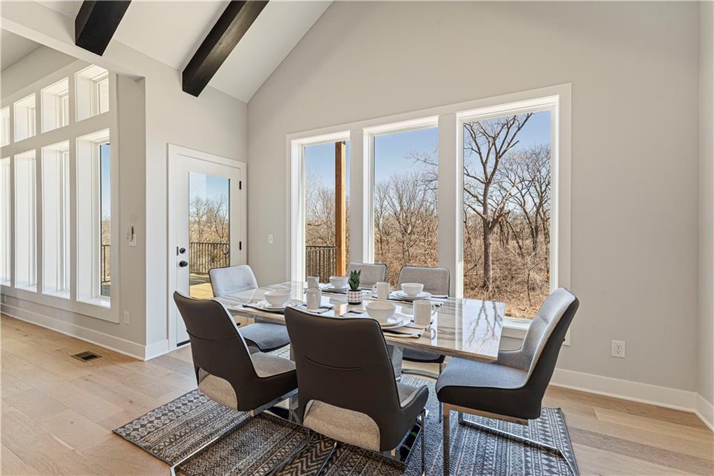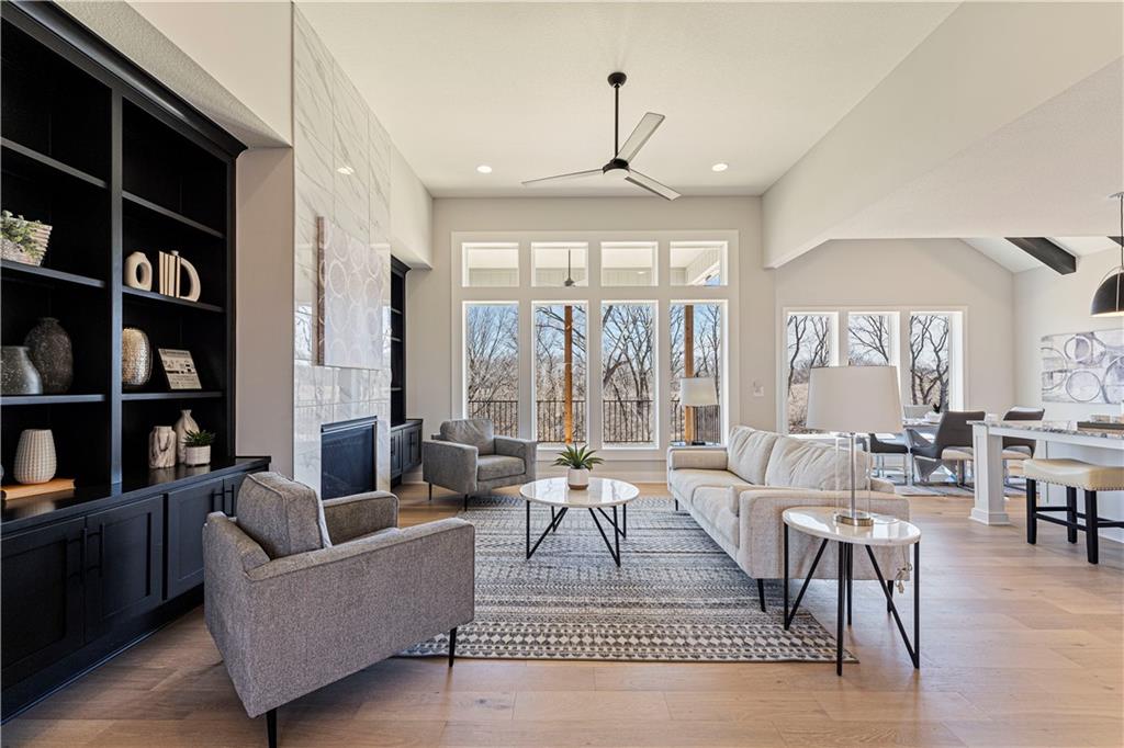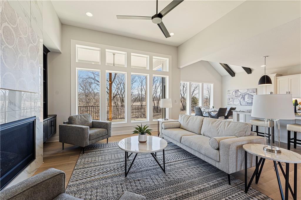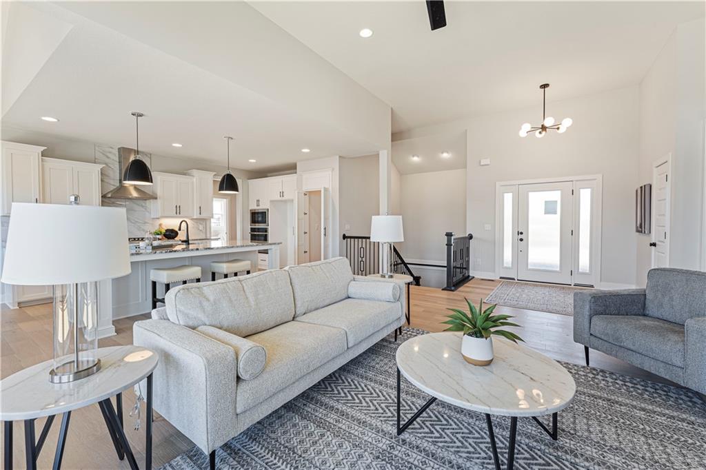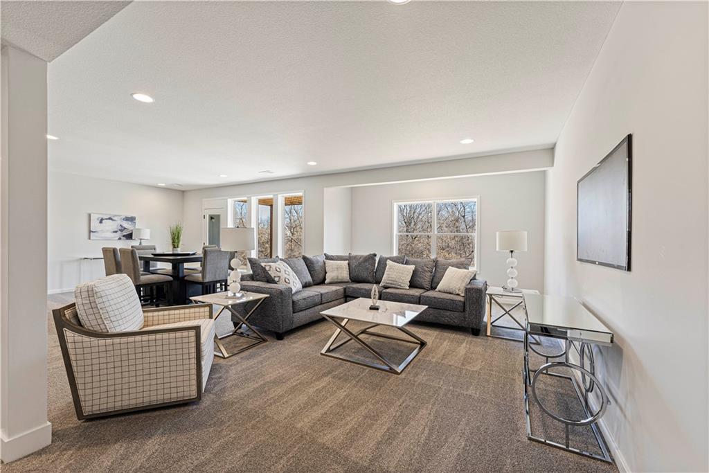 Welcome to the Timberland Reverse by New Mark Homes, a beautifully designed reverse 1.5-story offering approximately 2,736 square feet of finished living space in the highly desirable Cadence community! This thoughtfully crafted home highlights true main-level living with a light-filled, open layout designed for both everyday comfort and entertaining. The great room, kitchen, and breakfast area flow seamlessly together, creating an inviting central gathering space. The chef’s kitchen features a large island, gas cooktop, quartz surfaces, and abundant custom built cabinetry, while the great room showcases a stunning fireplace and elegant finishes. The main-level primary suite offers a peaceful retreat with a freestanding soaking tub, walk-in closet, and spa-inspired bath. The laundry room, secondary bedroom, full bath, and convenient mudroom with built-in boot bench complete the main level, making daily living effortless and functional. The finished walkout lower level expands the home with a spacious recreation room, custom bar area, two additional bedrooms, and a full bath—perfect for hosting guests or creating flexible living space! Enjoy outdoor living from the covered deck and walkout patio, ideal for relaxing evenings or entertaining! Located in the vibrant Cadence community, residents enjoy neighborhood walking trails, swimming pool, and green space, plus quick access to Platte Purchase Park! Situated within the Staley High School attendance area, this home offers an exceptional Northland lifestyle! Home is Under Construction at this time with an estimated completion date of Late July/Early August. Taxes & sqft estimated. Simulated photos of a previous model. Some selections & details may vary from this actual home. Home is pre-sheetrock stage as of 3/16/2026.