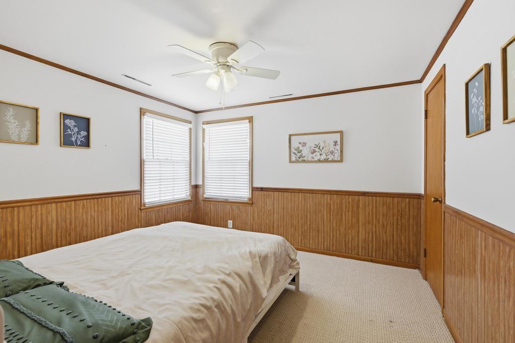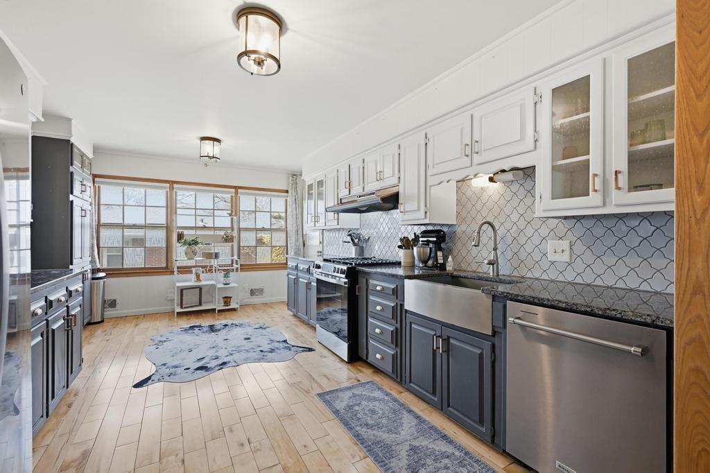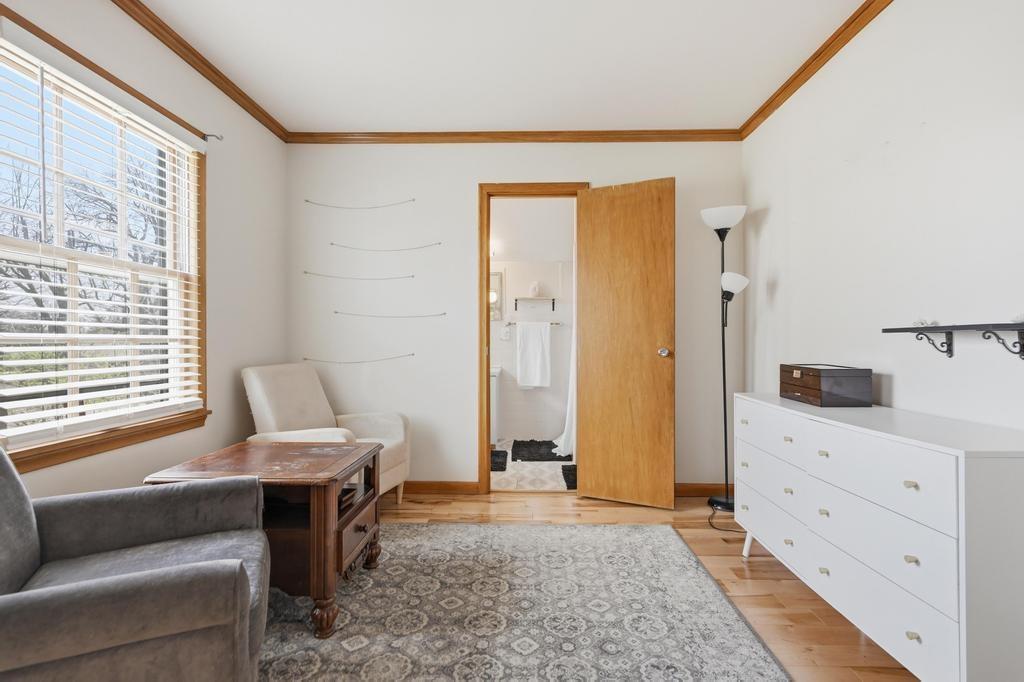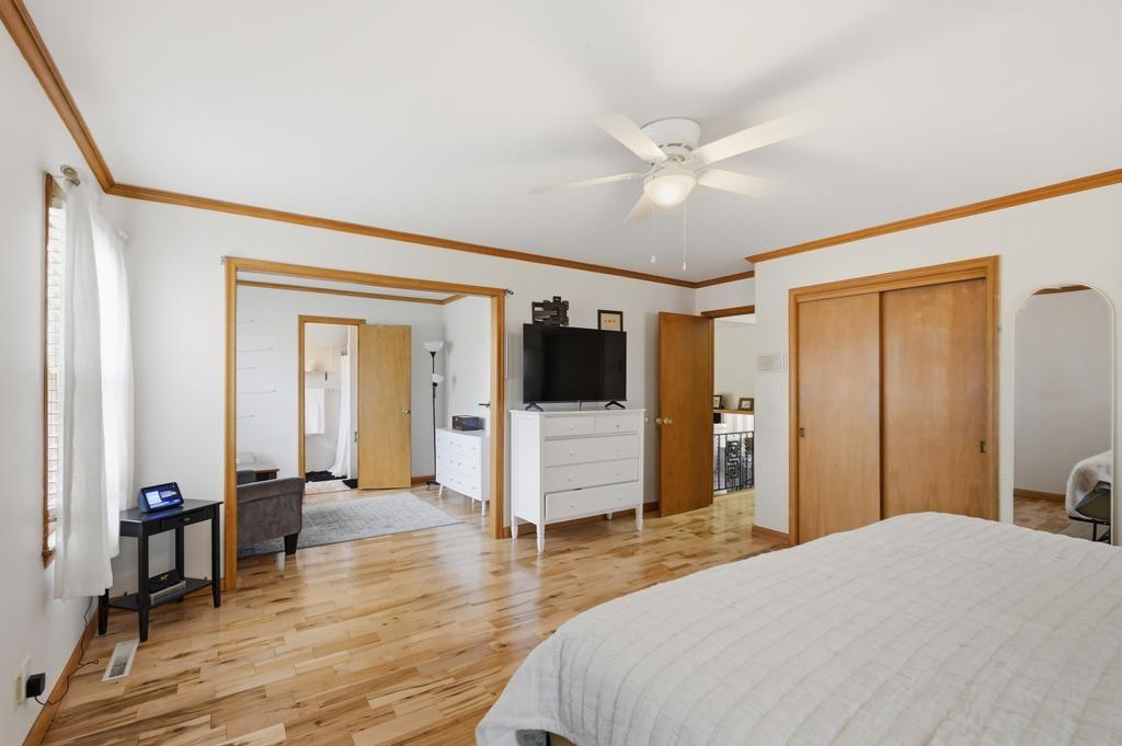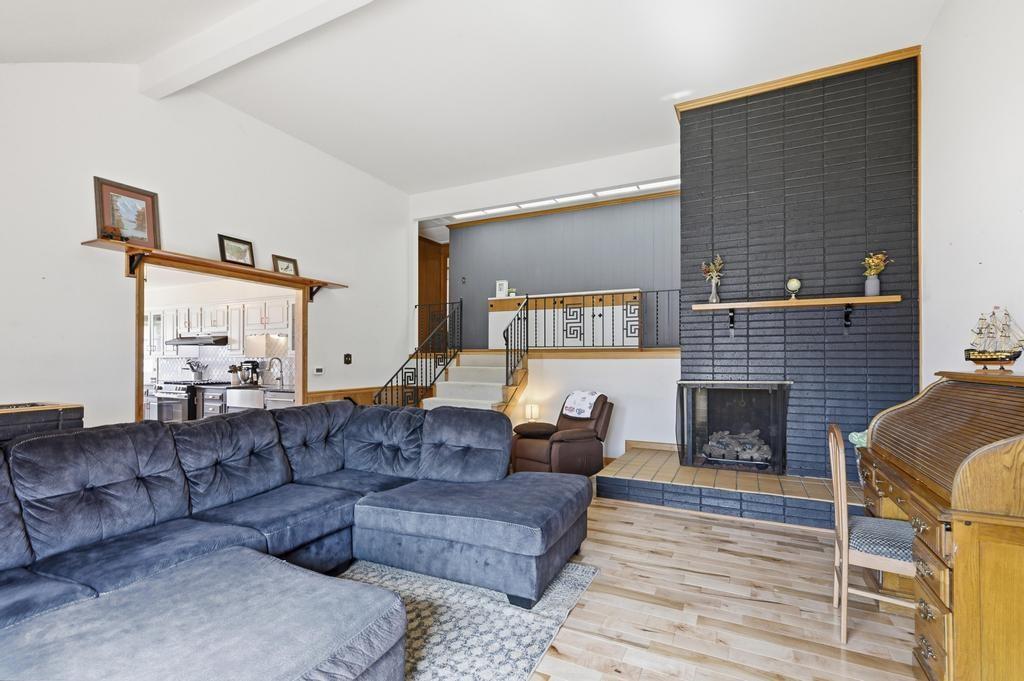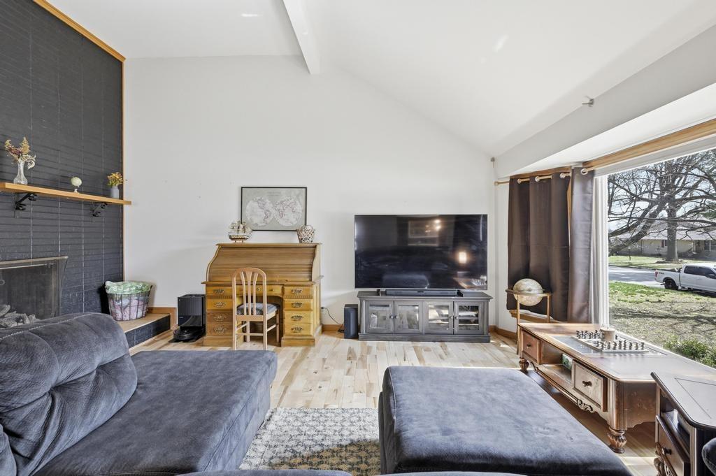 This 4-bedroom, 3-bathroom residence perfectly balances mid-century character with the square footage a modern family needs. This home offers room to grow in a peaceful neighborhood setting. The front of the home stands out with its unique midcentury modern style and two large bay windows that fill the living area with sun. The open-concept two-story open greatroom is anchored by a working floor-to-ceiling gas fireplace, creating a warm and inviting atmosphere the second you walk in. The kitchen serves as a social hub, finished with thick granite surfaces, copper hardware, and a large stainless farmhouse sink. High-quality stainless steel systems ensure the kitchen is ready for holiday meals. Organization is easy here; the laundry room is its own separate space filled with additional cabinetry and a convenient sink for cleanup. The private side of the home is just as impressive. The owner’s suite acts as a personal getaway, complete with dual vanities and dual closets featuring custom shelves. A special bonus room attached to the suite offers a flexible "flex space" for a private library or a spa-like relaxation area. Modern touches like integrated USB outlets and crown molding throughout the upper levels add to the home's quality. Outside, the living space continues with a 0.34-acre yard that is fully fenced for privacy. Whether you are relaxing in the cooled sunroom or sitting by the backyard fire pit, the layout is built for comfort. For those who need extra room for hobbies or gear, the dry unfinished basement provides 1,176 square feet of storage space. This home offers a functional split-level floor plan where every room has a purpose, all set within a tidy neighborhood near local trails, parks, and the town square. Experience a home that provides both architectural style and the space your lifestyle requires.