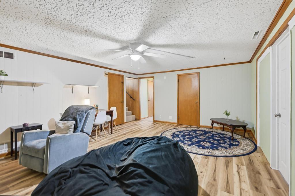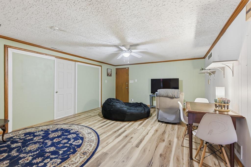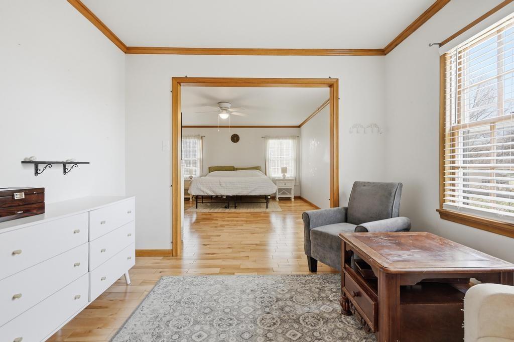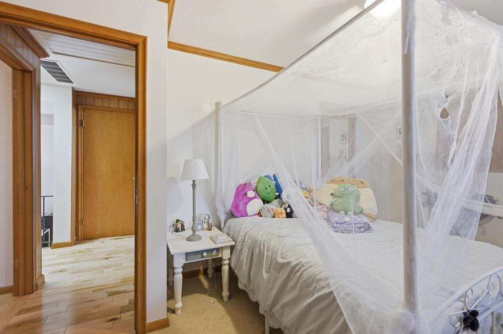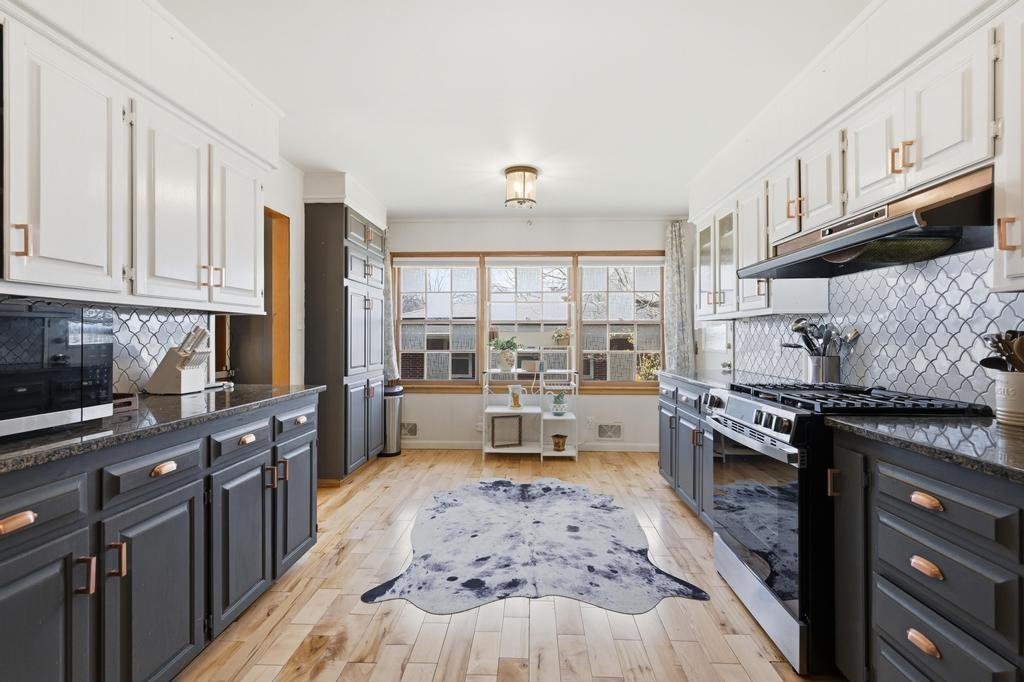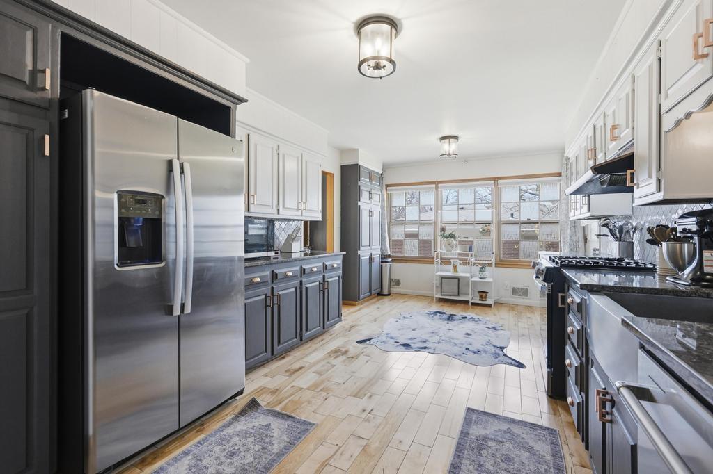 This 4-bedroom, 3-bathroom residence perfectly balances mid-century character with the square footage a modern family needs. This home offers room to grow in a peaceful neighborhood setting. The front of the home stands out with its unique midcentury modern style and two large bay windows that fill the living area with sun. The open-concept two-story open greatroom is anchored by a working floor-to-ceiling gas fireplace, creating a warm and inviting atmosphere the second you walk in. The kitchen serves as a social hub, finished with thick granite surfaces, copper hardware, and a large stainless farmhouse sink. High-quality stainless steel systems ensure the kitchen is ready for holiday meals. Organization is easy here; the laundry room is its own separate space filled with additional cabinetry and a convenient sink for cleanup. The private side of the home is just as impressive. The owner’s suite acts as a personal getaway, complete with dual vanities and dual closets featuring custom shelves. A special bonus room attached to the suite offers a flexible "flex space" for a private library or a spa-like relaxation area. Modern touches like integrated USB outlets and crown molding throughout the upper levels add to the home's quality. Outside, the living space continues with a 0.34-acre yard that is fully fenced for privacy. Whether you are relaxing in the cooled sunroom or sitting by the backyard fire pit, the layout is built for comfort. For those who need extra room for hobbies or gear, the dry unfinished basement provides 1,176 square feet of storage space. This home offers a functional split-level floor plan where every room has a purpose, all set within a tidy neighborhood near local trails, parks, and the town square. Experience a home that provides both architectural style and the space your lifestyle requires.