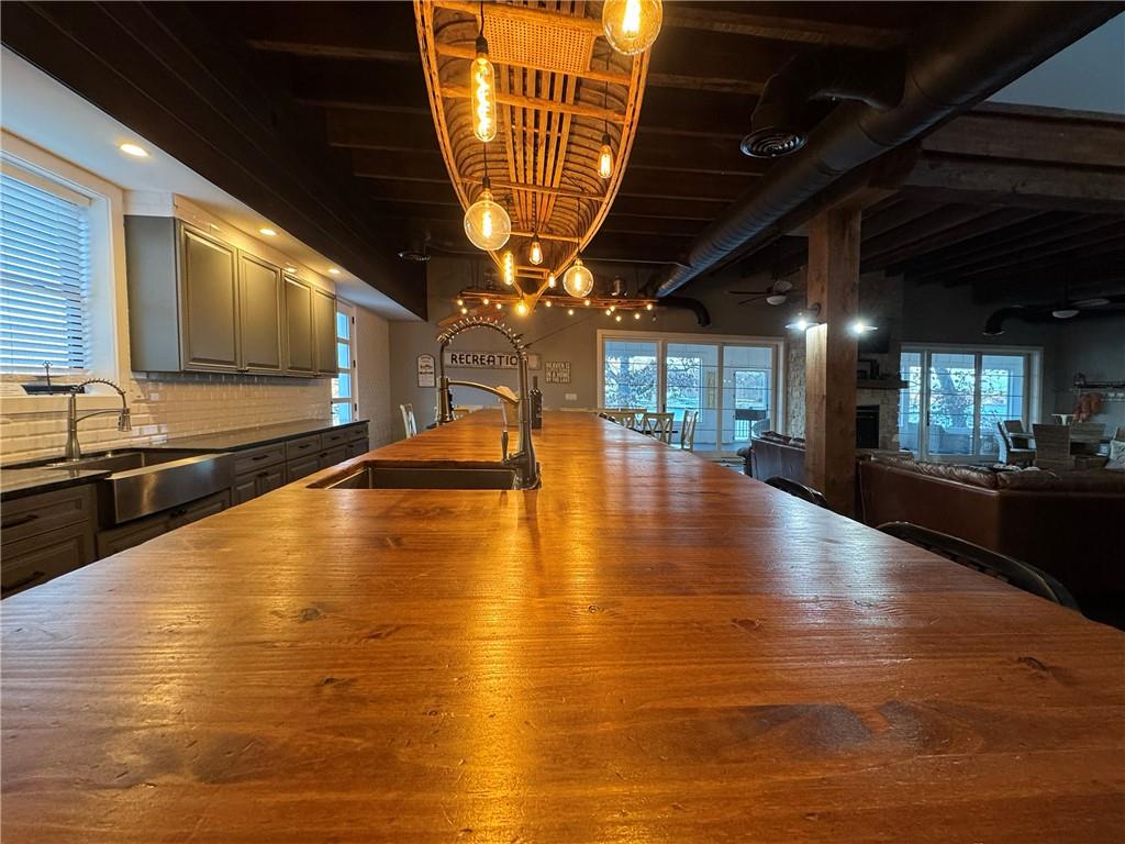 Show-stopping waterfront retreat on 8mm w/spectacular lake views! Impressive work of craftsmanship features reclaimed wood + shipyard beams, custom lighting, & heated floors. This stately, open-concept creates a tranquil feel of rustic sophistication - completely furnished. Striking architectural impact, designed for resort-style living or high-end short term rental earning $2k per night (proven $150k+ yearly), this sprawling estate is built to please a crowd. Gourmet chef’s kitchen boasts state-of-the-art commercial-grade stainless steel appliances w/ impressive 17-ft custom island. Sleeping 25+, this iconic estate offers 6 unique king bedrms, each w/full spa-style baths, incl 2 primary suites w/sitting areas + covered decks. Addl Bunkhouse sleeps 11. Epic game room incl professional-grade pool table & shuffleboard for endless fun. Outdoors, enjoy a massive screened-in patio w/ locker-room-style bathroom - quick outdoor access for swimmers & boaters. Above 2-car garage/workshop - luxury 2-bdrm apartment + loft bed- sleeps 6, perfect for rental. Metal Roof. Deep water, 2-bay concrete cruiser dock + 2PWC lifts. Unparalleled waterfront sanctuary that defines upscale vacation living. Proven rental history @ $2000 per day. The house next door is for sale by the same owner, feel free to tour both.
