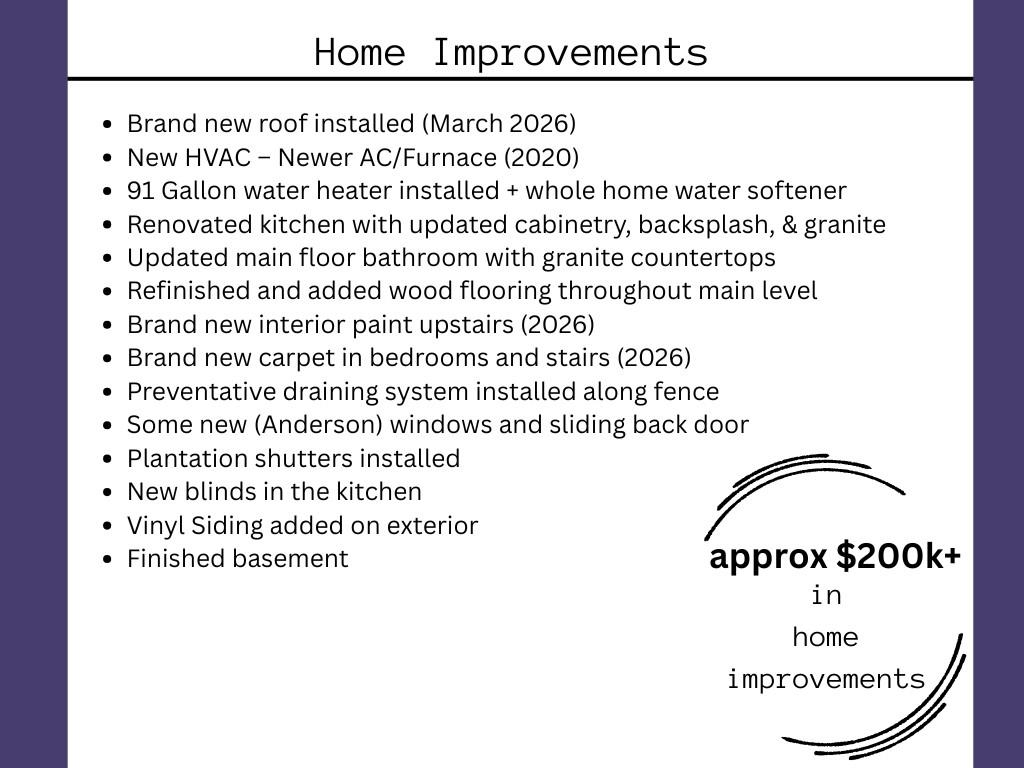 LOCATION, LOCATION, LOCATION! Over $200k in home improvements over the years. BRAND NEW roof (March 2026), Newer Furnace, AC (2020). 4th Non-conforming bedroom in basement. 2 separate living spaces. Beautifully updated 1.5-story home with main-level primary bedroom with large closet and incredible storage. The renovated kitchen with granite countertops & updated cabinetry opens into a bright living space with soaring ceilings—nearly 12 feet—and abundant natural light. Convenient spacious laundry room off kitchen. Fresh interior paint, newer wood floors, and BRAND new carpet make the home feel crisp and move-in ready. 2 bedrooms upstairs with full bathroom. Downstairs you’ll find additional living space, a full bathroom, a non-conforming 4th bedroom, and over 300 sq ft of unfinished space ready to become extra storage, gym, workshop, or future finished area.