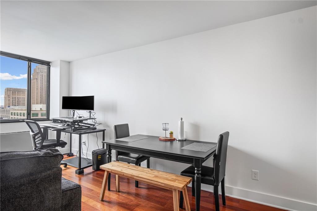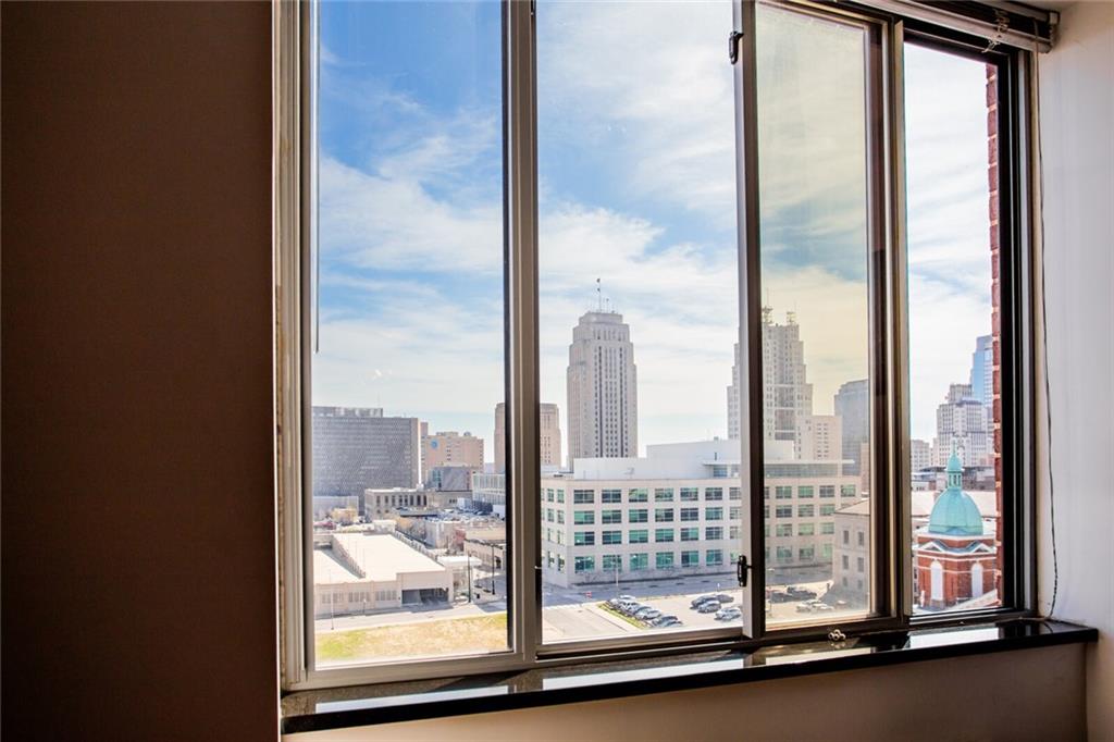 Beautiful and well maintained one bedroom/one bathroom unit at The Metropolitan. This twelfth floor unit puts you two floors from the top and offers south facing city skyline views! Natural light shines through all day long. The unit has been freshly painted and brand new carpet in the bedroom as of Summer 2025. Unit features include vinyl plank flooring, updated countertops and ceramic tile in the kitchen and bathroom. Ample storage and closet space throughout plus washer and dryer hookups, a feature not found in every Metropolitan unit! One attached, secure parking space and additional storage unit included in the sale. HOA dues reflect Association dues only. Gas, Water, and small Electric fee will be billed back to Owner based on usage. Owners will establish a separate account to pay Electric (Lights & Appliance use), Cable, and Internet. Unit is 50% tax abated through 2028. Property taxes were just lowered!! Amenities include: Concierge, Lounge, Marketplace with free coffee, Business Center, Community Laundry, Fitness Center, Saunas, Rooftop Pool, and overnight Security. Close proximity to the Streetcar, River Market, Berkley Riverfront, Garment District, and Power & Light make this condo and building a great catch. Welcome Home to The Metropolitan!