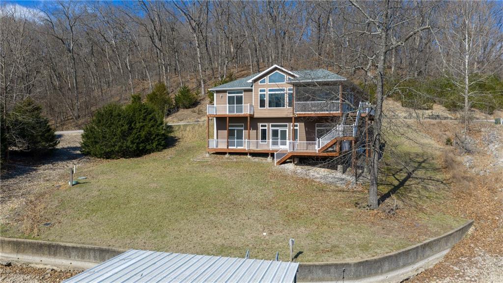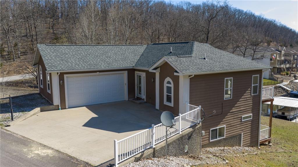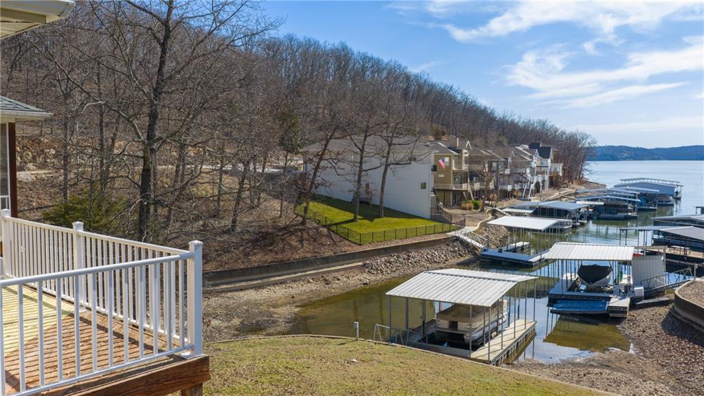 Luxury lakefront living in quiet cove on 26mm! Relax across multiple outdoor spaces, w/ gorgeous main channel views—perfect for morning coffee, sunset cocktails, & watching Margaritaville's July 4th fireworks. Just minutes from the lake’s best waterfront restaurants & attractions, just hop on the boat & let the vacation begin. Inside, this stunning open-concept retreat welcomes you with a grand hearth room featuring cathedral ceilings, gas fireplace, & dramatic windows framing breathtaking water views. Kitchen offers stainless steel appliances, breakfast bar, + sunny breakfast nook that opens to the screened-in porch overlooking the lake. The main-floor primary suite is a private sanctuary w/ its own deck for even more outdoor enjoyment and boasts coffered ceilings, large walk-in closet, spa-inspired bath w/ double sinks + jetted tub & walk-in shower. Walk-out lower level features a spacious lakeside rec room, 3 more bedrooms including a primary-style suite w/ full bath & supersized walk-in closet. Fresh Paint. New Carpet. 12x30 dock, lift + Monark Seville 24' pontoon w/150 Yamaha outboard. Boat Ramp. Paved streets- NO GRAVEL. HOA covers water/sewer. Underground utilities. Level parking 4+ & attached garage. No STR allowed.