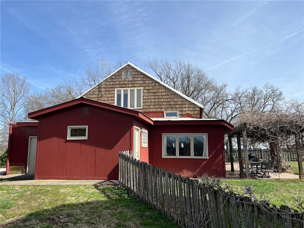Located 8 miles south of Lawrence in the unincorporated town Pleasant Grove. The unique barn home conversion resides on one of the highest plateaus in Douglas County on 11 acres. This Gable Barn with a hay mow was part of an early European settlement in the 1870s. For approximately 100 years it served as a barn for a productive dairy farm. In the 1970s it was converted into a home. The Brown family had the opportunity to purchase the original basketball flooring from Allen Fieldhouse. They repurposed all the flooring except the K piece, installing it in throughout the home. Much of the 3,600 square feet contains this flooring. Just think, famous basketball player played on this floor! The current owners have enjoyed being the stewards for 20 years, improving the property with recent bathroom and kitchen renovations, new double pane windows and a high efficiency HVAC system. The property contains a mix of green space and old growth timber to the west. The compound still retains a grain silo, old windmill pump, barn, 1950s storage building (could be an art studio or office) and a newer one car garage. This is a magical place. It gushes with a rural Kansas vibe and rich KU basketball history. Who’s next?