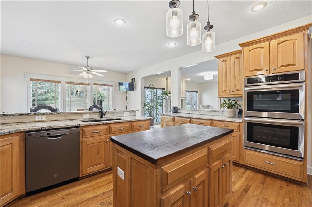 Don't miss the exceptional value in The Fairways! This stunning 4-bedroom, 3.5-bathroom home offers an unparalleled living experience. Enjoy fresh exterior and partial interior paint, new garage doors, and meticulous landscaping for impressive curb appeal. The open kitchen boasts newer appliances, double ovens, an island, and granite countertops, flowing seamlessly into the dining and eat-in areas that open to a charming patio. The spacious family room and the mid-level den, each feature fireplaces – perfect for entertaining or quiet evenings. All generous sized bedrooms, including new carpet in 2 of them.The primary suite also offers new carpet, vaulted ceilings, a walk-in closet, jetted tub, and dual vanities, plus convenient upstairs laundry. The lower level is an entertainer's dream with an library/office featuring a 15-foot ceilings with custom built-ins, a third fireplace and french doors. You'll love the dual staircase leading to an exercise room, and a theater/family room. Ample storage throughout! With 6-year-old HVAC and approximately a 10-year-old roof, this home features a lot of crown molding and beautiful hardwood floors. All appliances stay with the home. Located just minutes from shopping, top-rated schools, the airport, major highways, and two golf courses, it truly has something for everyone. Schedule your showing today – this one won't last!