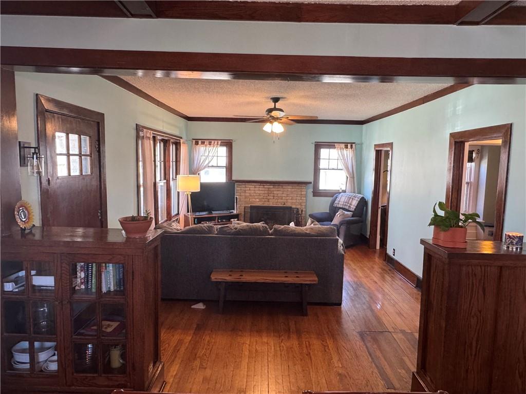 This charming 1.5-story home offers classic character and modern convenience. Four bedrooms with walk-in closets and two full baths provide flexible living space — ideal for families or those who love hosting. Original beautiful hardwood floors along with built-in bookcases and window seats. Warm wood floors flow through the main living areas, creating an inviting, timeless atmosphere. The home sits on a desirable corner lot and features a welcoming front porch perfect for morning coffee or evening relaxing. A dedicated laundry room adds practicality, and the attached one-car garage offers secure parking and extra storage. Full basement for storage as well. Well-maintained and full of curb appeal, this Paola home blends traditional charm with everyday functionality. Bring us your offer!