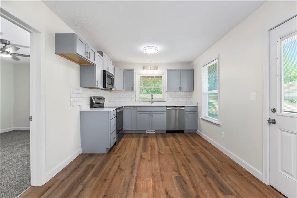 Rare opportunity to own two beautifully remodeled homes on 1.5 acres in the highly sought-after Park Hill School District—all for the price of one! Perfect opportunity for short-term rental potential during 2026 World Cup, live in one, rent the other or multi-generational living. Both homes feature updates including all new flooring, fresh interior paint, new kitchen cabinets with granite countertops, updated bath vanities, showers, modern lighting. The ranch home is a 1,200 sq ft true ranch featuring 3 bedrooms and 1 full bath, kitchen area, breakfast bar and dedicated dining area, and an attached garage. The bungalow home is a 902 sq ft ranch offering 2 bedrooms and 2 full baths with an open kitchen, dining and living area. Both homes sit on a peaceful 1.5-acre property just off I-29, providing a quiet setting with convenient access to the city. Located approximately 20 minutes from KCI Airport, 10 minutes to Downtown Kansas City, and minutes from Zona Rosa shopping and dining. The two bedroom, two bath home, (2308) is currently rented for $1,775/month, lease ends January, 2027.