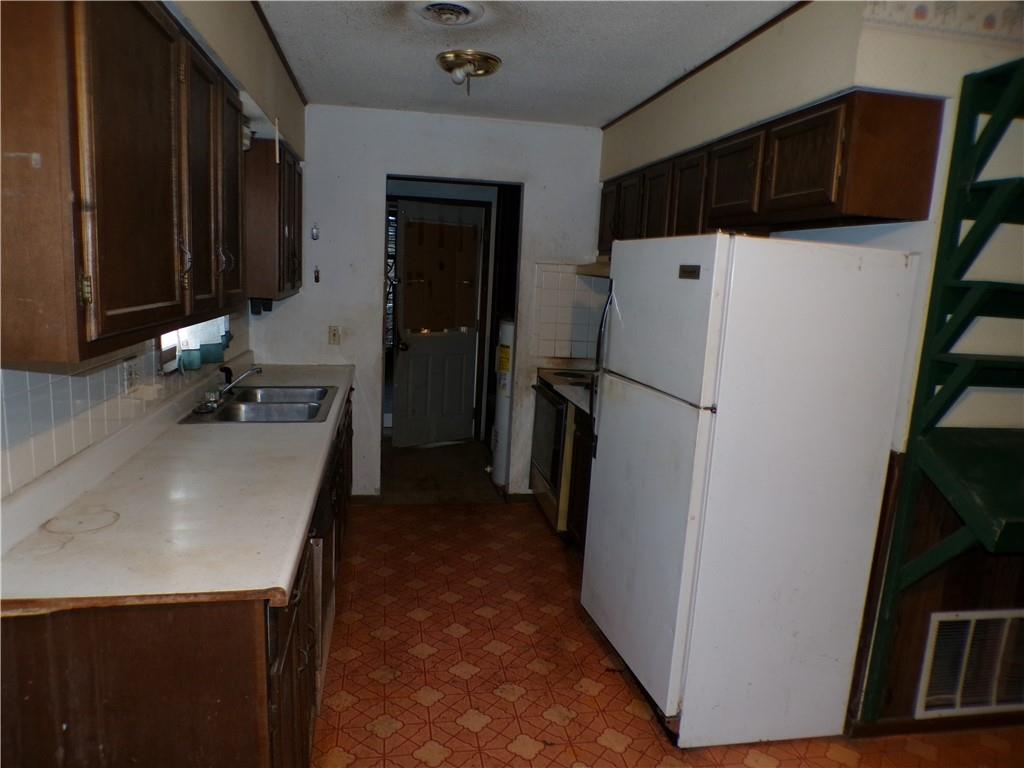 The Ranch Style home is on a nice-sized lot with a fence in the backyard. The home has 3 bedrooms, 1.5 bathrooms, a living room, a kitchen, and an eat-in kitchen. The home does need some work and is being sold in as-is condition.