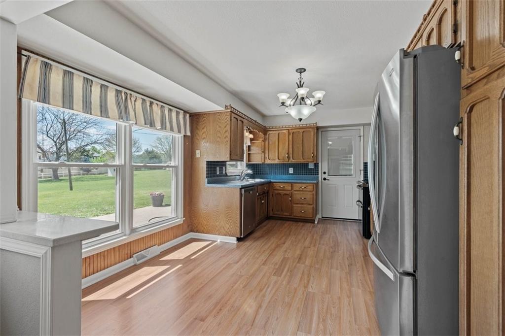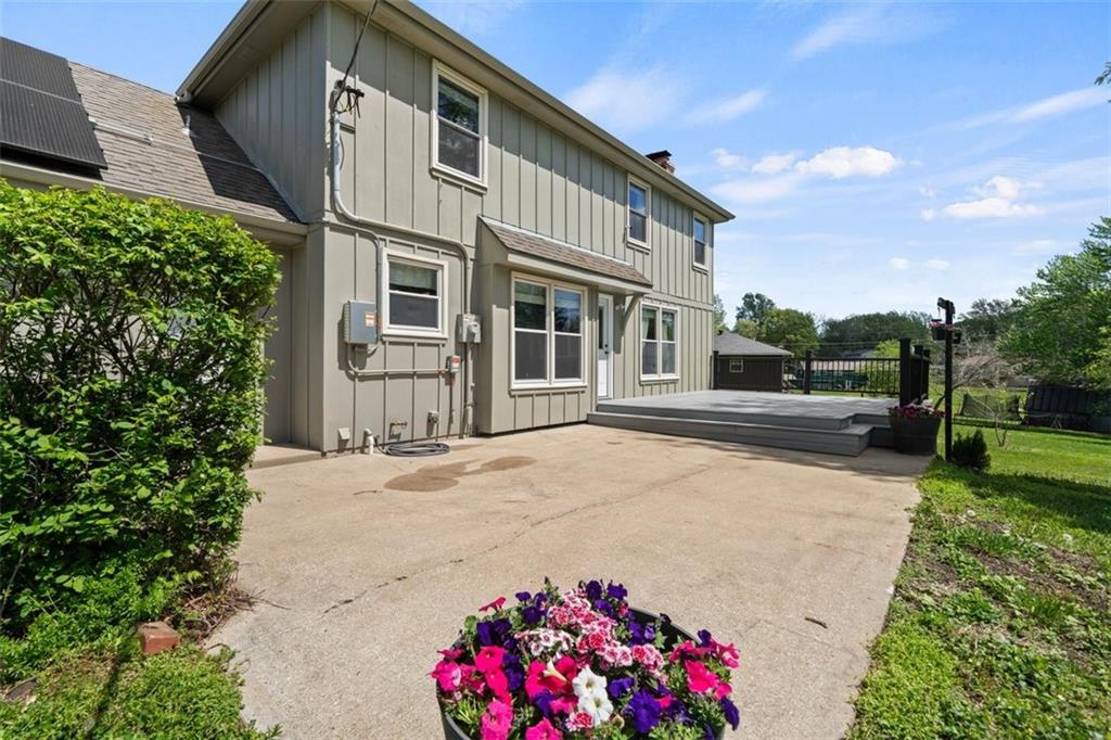 Welcome to this alluring move in ready 4 bedroom – 2.5 bath home; sitting on an expansive .61 acre lot. Outside there is plenty of room to relax, garden, or entertain without the restrictions of a homeowners association. Recently updated landscaping greats you at the front door. The radiant heated main floor provides a working wood burning fire place turning the living room into a space of ambiance. An open concept leads to the peaceful kitchen view overlooking the expansive back yard and a 16 X 20 maintenance free Trex deck with guardrail. All kitchen appliances stay with the home. A gas stove is hard to find and this home comes with one! The enclosed main floor laundry washer and dryer stay as well. A .5 bath is conveniently located across the hall. The dining space and den/office round out the main floor. Up the stairs to the second floor is where you will find the master bedroom/bath, second full bath and 3 additional rooms. Wake up in the morning and step onto a heated electric floor in the master bedroom and master bath adding a cozy feel all year long. The recirculating hot water provides the spacious second floor bathroom and shower with hot water in seconds. Double pane windows are installed throughout the home for energy efficiency. The solar array makes this home an eco-friendly residence harnessing renewable energy. The solar panels on the roof stay with the home. There is no outstanding contract on the solar array. This home offers a 30 amp Tesla EV charging station. Feel safe and secure knowing the doorbell/camera system is installed and staying. A two car garage with a two lane driveway offers additional parking spaces. The basement below serves as storage space and a storm shelter. This home sits in Louisburg where you find small-town charm with the modern convenience of being close to the city.