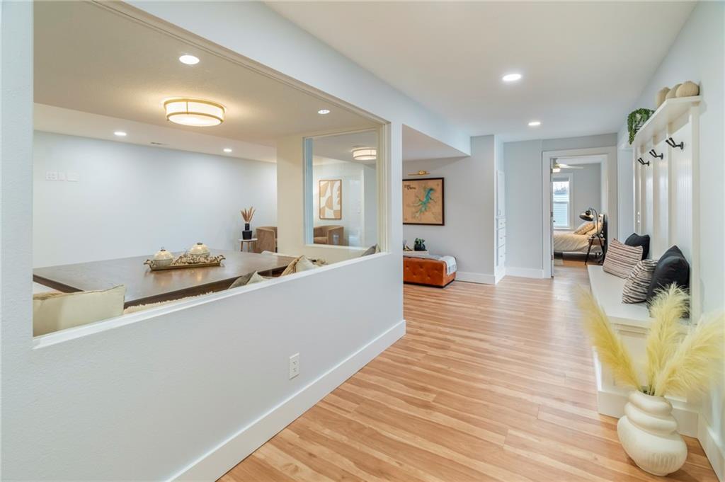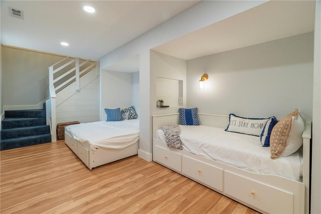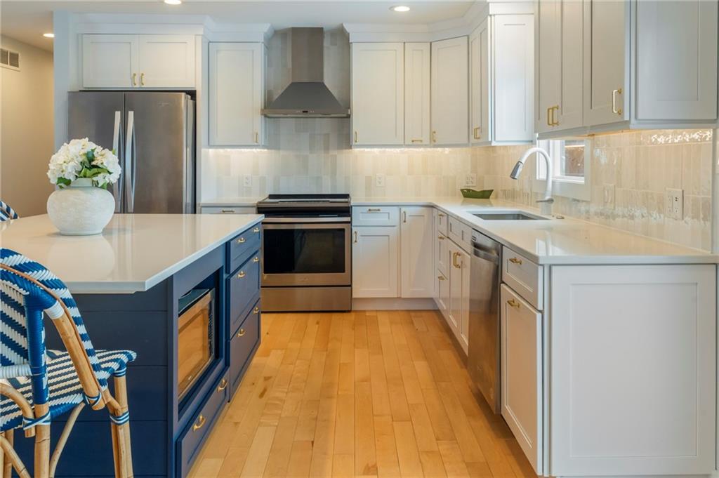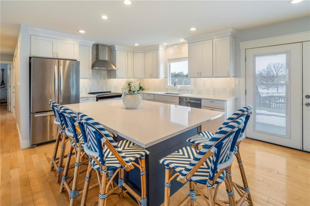 Modern, fun, and Turn-Key, this lakefront retreat is ready for you to enjoy! This beautifully remodeled 5-bedroom waterfront home is designed for ultimate summer living, complete with a dock and pavilion perfect for soaking up the sun. Move-in ready and thoughtfully designed for comfort and convenience, the home features two kitchens, two laundry areas (one on each level), and five spacious bedrooms. Step outside and enjoy the spacious deck, beautiful sidewalk down to a concrete patio right at the water’s edge, creating the perfect setting for relaxing or entertaining. Inside, you’ll love the bright, refreshing finishes that truly bring lake life to life. The main level showcases a soothing color palette, hardwood floors, and updates throughout, including new HVAC, plumbing, electrical, siding, and windows, this home has been remodeled down to the studs. The kitchen features stunning quartz countertops, stainless steel appliances including a dishwasher, and a stylish wet bar. The lower level is just as impressive, offering a second kitchen with dishwasher, eat-in dining area, 2 bedrooms, and two twin-to-king trundle daybeds. Additional highlights include built-in cubbies, banquette seating, and beautifully tiled bathrooms. Conveniently located near the main entrance and just moments from the clubhouse, salt water pool, marina, and beach, you’ll love having summer fun right at your fingertips—including food trucks within easy reach. Lake life is calling, don’t miss your chance to make it yours! The yard is in the process of being seeded and reworked due to newly installed lawn irrigation and recent improvements.
