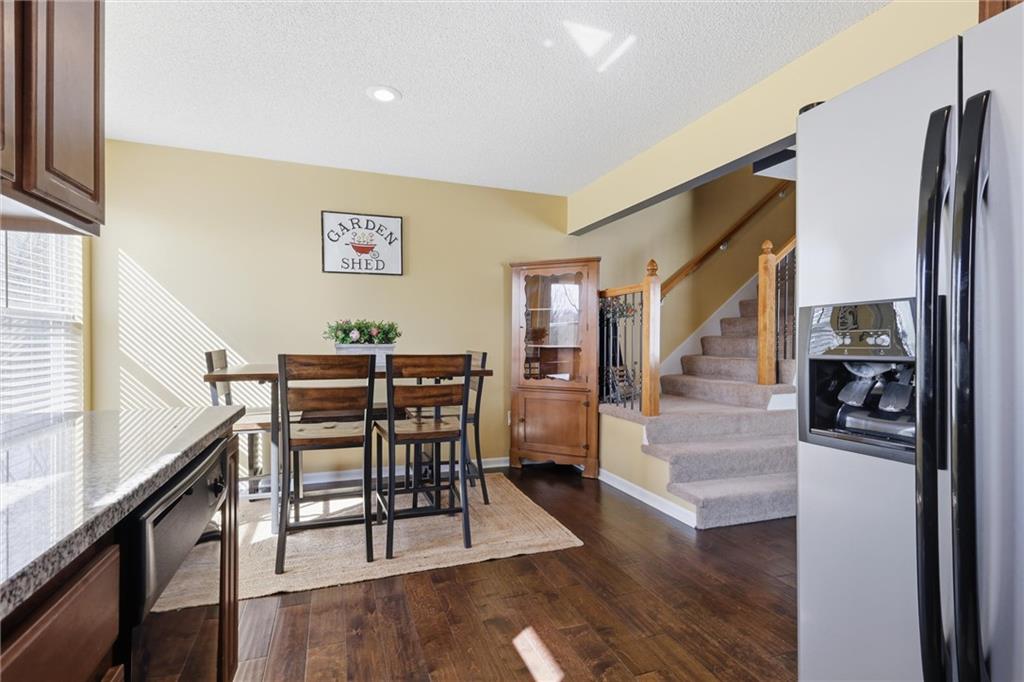 Back on the Market and ready for you! No fault to seller! Easy living in Delaware Highlands. This 3-bedroom, 2.5-bath townhome keeps life simple with a low-maintenance exterior, HOA-provided lawn care, and a layout that just makes sense. Wood floors run throughout the main living areas, and the updated kitchen features granite countertops and all appliances staying. Upstairs, you’ll find spacious bedrooms with double closets and the convenience of second-floor laundry right where you need it. The full basement is ready to finish, giving you room to expand with a rec space, home gym, or office. Out back, enjoy a treelined setting with added privacy and no neighbors directly behind you. It’s the kind of space that feels a little more tucked away while still being close to everything. Roof is just 2 years old! Location is a major perk here. You’re minutes from shopping, restaurants, and entertainment at Legends Outlets Kansas City and the surrounding Village West district, with quick access to I-70, I-435, and K-7 for an easy commute. Plus, it’s within walking distance of Delaware Ridge Elementary School. Move in, settle down, and spend your weekends enjoying the area instead of worrying about yard work.
