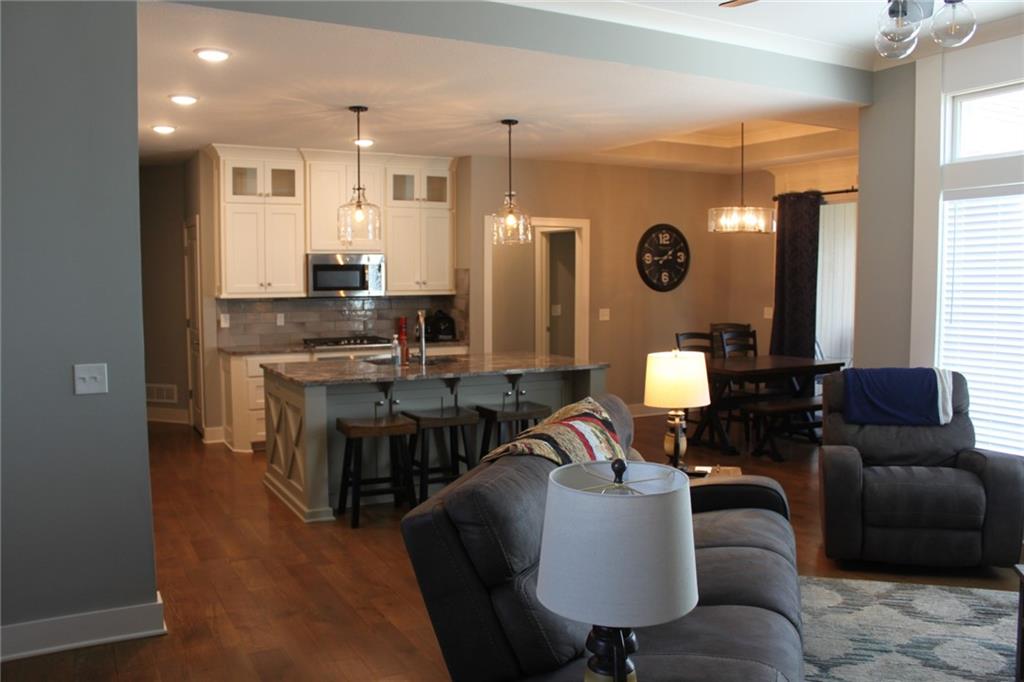 This stunning single family home located at 1768 Homestead Dr in Liberty, MO was built in 2018. Boasting 3 bathrooms and a spacious finished area of 3,168 sq.ft., this property offers plenty of room for comfortable living. Situated on a generous wooded lot backing to nature sanctuary and trails. This modern home provides ample outdoor space for relaxation and entertaining. With its contemporary design and desirable features, this home is sure to impress any discerning buyer looking for a stylish and comfortable living space Additional features include a 5th non-conforming bedroom in the basement and includes a 3 car suspended garage with storage room beneath. The master bath is equipped with heated tile flooring. Exterior features include screened in deck with a stone gas fireplace for entertaining on cool nights. Easy to maintain yard and landscaping with sprinkler system.