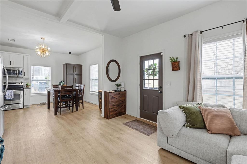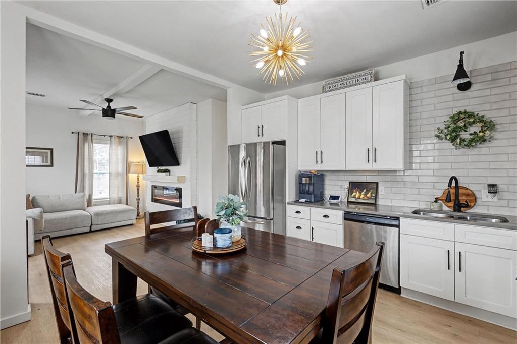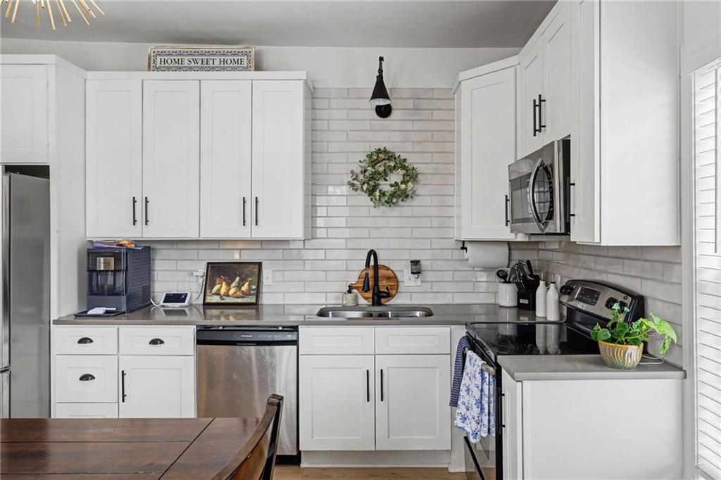 Dreaming of a simpler lifestyle where you arrive at home and choose between relaxing on the front porch or spending time in your own greenhouse? Welcome home to 11512 McGee St. From the moment you pull up, you’ll fall in love with the front porch and matching shutters. Step inside to find updates throughout, including luxury LVP flooring that flows from the living room into the kitchen, and an accent wall with an electric fireplace that quickly becomes the focal point. The eat-in kitchen opens to the living space and offers crisp white cabinets with updated hardware, granite countertops, tile backsplash, a pantry for extra storage, and stainless steel appliances. The oversized primary bedroom easily fits a king-size bed with room for nightstands on both sides. The bathroom was designed with storage in mind, featuring a linen closet tucked behind the door. The laundry room is conveniently located off the back door with a designated drop zone. Out back, you’ll find a large fenced yard with a greenhouse that stays with the property. Enjoy the freedom of a lower-maintenance, simpler lifestyle in a house you will love to call Home.