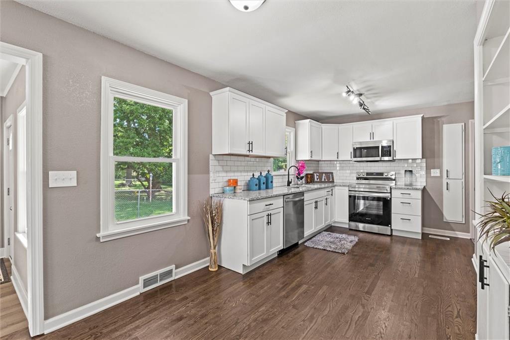 Rare opportunity to own this beautifully remodeled home with an incredible 24x30 detached three-car garage. From the moment you step inside, you’ll appreciate the extensive updates throughout, including new flooring and stylish finishes from top to bottom. The stunning kitchen features stainless steel appliances, shaker-style cabinetry, granite countertops, and a custom tile backsplash. A spacious living room provides the perfect gathering space, while the bonus room near the entry offers excellent flexibility for a home office, playroom, or additional living area. The primary suite is a true retreat with a beautifully updated en-suite bath showcasing a tiled shower and dual vanity. The original garage has been thoughtfully converted into a comfortable third bedroom with its own mini-split system. Downstairs, the large open basement offers abundant storage space and future potential. Outside, the detached three-car garage is a standout feature—ideal for car enthusiasts, hobbyists, or anyone in need of a workshop—plus a secondary storage shed adds even more convenience. Homes with this combination of updates, space, and garage capacity are hard to find. Schedule your showing today!