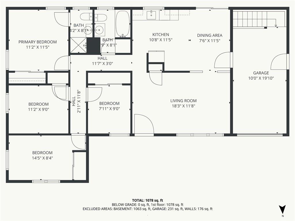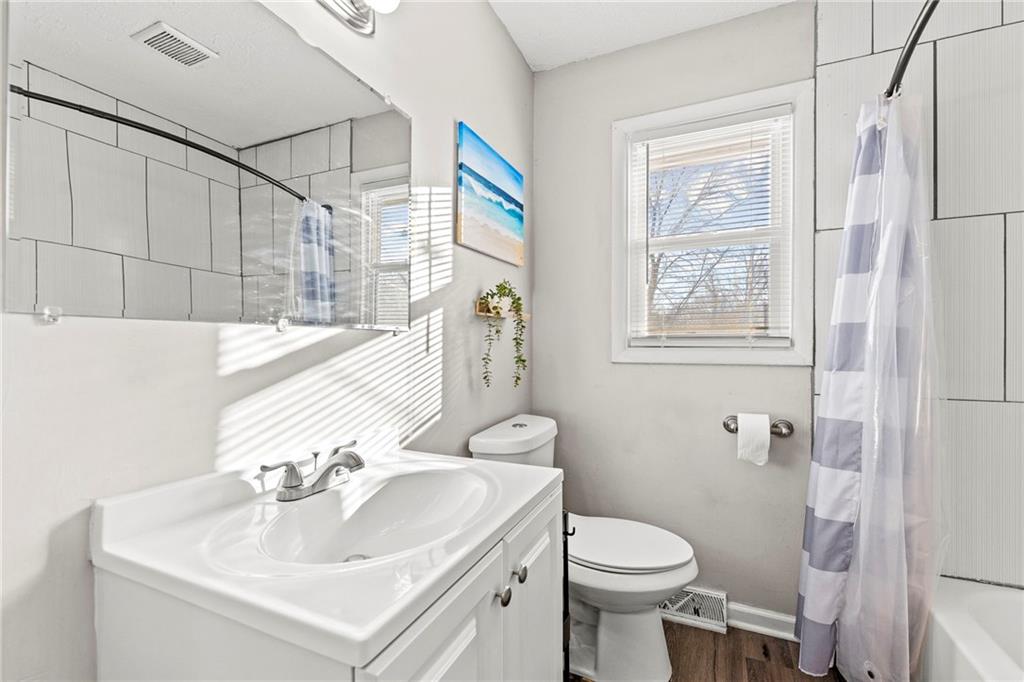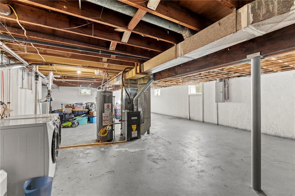 Rarity in this area: charming ranch home with 4 bedrooms, 2 full bathrooms, and spacious lot with mature trees. Hardwoods throughout main level, luxury vinyl plank flooring for durability in wide kitchen. All bedrooms have ceiling fans for comfort, newer windows all around. Kitchen has double sink under picture window overlooking the yard, kitchen exits to back deck. Fridge and washer/dryer stay with the home, along with outdoor fire pit! Primary bedroom has its own full bath, and second full bathroom is in the hall. Large basement perfect for storage or ready for you to finish as optional play area, or a workout, craft, or carpentry area.