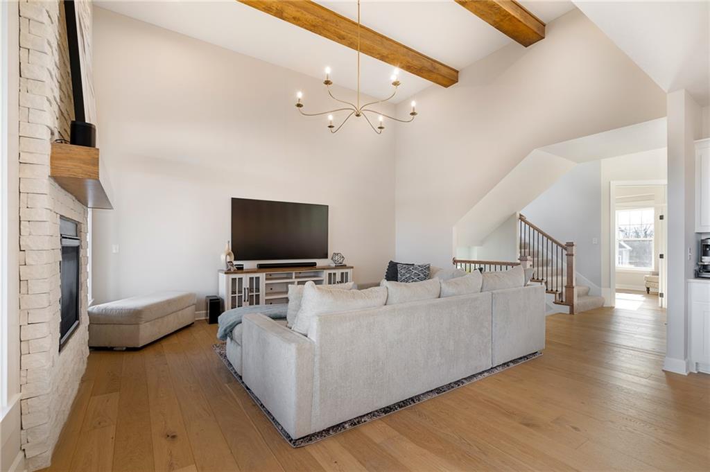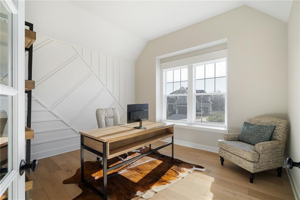Stunning Award-Winning 1.5-Story will back to the future Blue Valley elementary school. This floor plan is designed for luxury and functionality. Thoughtful details include wood end caps, iron spindles, and vaulted ceilings, creating an elegant and spacious feel. The see-through fireplace seamlessly connects the great room to the covered patio, perfect for indoor-outdoor living. The center-island kitchen shines with painted cabinetry, offering both style and practicality. The main-level owner’s suite is a true retreat, featuring an oversized closet and a spa-like walk-in shower with dual shower heads. The office located off the entry provides the perfect work-from-home or study space. Tesla charger installed in garage stays with the home. Sundance Ridge’s premier amenities are now open! Enjoy a state-of-the-art fitness center, a resort-style pool, and scenic nature trails. Planned future amenities include a full gymnasium, pickleball and bocce ball courts, a playground, and a community garden. Clubhouse & first pool now open! Don’t wait—schedule your tour today!