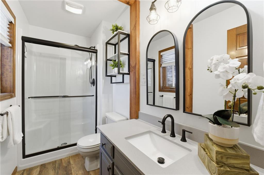 Looking for a peaceful retreat? Located at the end of the street where neighborhood meets acreage. Views of the land for miles and miles. This charming home is perfectly set against a serene backdrop of open land, a tranquil pond, and mature trees, offering a true sense of calm and privacy. Enjoy the views year-round from the beautiful four-season room, where nature becomes part of your everyday living. Inside, you’ll find an inviting living room anchored by a lovely fireplace, perfect for cozy evenings. The fabulous kitchen shines with stainless steel appliances, granite countertops, and light, bright white cabinetry—and all appliances stay with the property for added convenience. New flooring enhances the entry, kitchen, and dining areas, while new designer carpeting on the stairs adds an upscale, cozy touch. The finished lower level provides a second living space along with a full bath, offering flexibility for guests, a home office, or recreation. All bathrooms have been updated with today’s stylish finishes. Step outside to a spacious deck overlooking the picturesque landscape, or relax on the welcoming front patio, enjoy stunning sunsets! So close to Smithville Lake where 7,190 acres lake offers camp grounds, boating, marina, fishing, swimming, and so much more! This home is truly special. Located in the highly rated, Smithville School District! So much packed in one location!