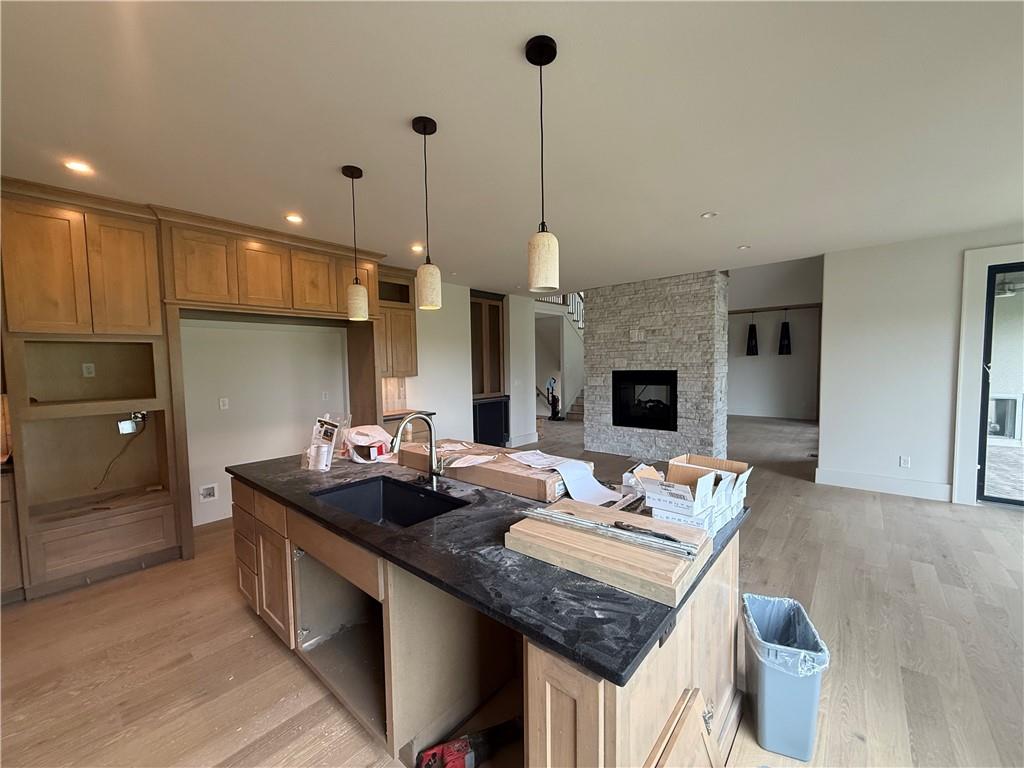 The stunning “Monaco” by JW Thomas absolutely delivers. From the moment you walk in, you’re greeted by soaring ceilings in the great room that make the whole space feel open and grand. A beautiful see-through fireplace creates the perfect connection between the great room and the kitchen/hearth room—ideal for both cozy nights in and entertaining. The primary suite is a true retreat, featuring a spa-like bathroom and an oversized walk-in closet that checks every box. Downstairs, the finished lower level offers even more living space with a family room, wet bar, a true fourth bedroom, and a full bath—perfect for guests or multi-generational living. And let’s not forget the covered patio with its own fireplace…because midwest evenings were made for this. While living in Woodland Oaks, enjoy the benefits of the amenities in the surrounding area, including Lake Jacomo! Woodland Oaks is also a short walk away from Legacy Park, with a state-of-the-art community center, and the Legacy Park Amphitheater. Enjoy miles of walking trails, a disc golf course, and sports facilities for all ages, all in a convenient location to your home. Home is under construction and final pricing is subject to change. The specification sheet will outline planned finishes for this property, and supersede any details, photos, drawings, or depictions used for marketing purposes on this listing.